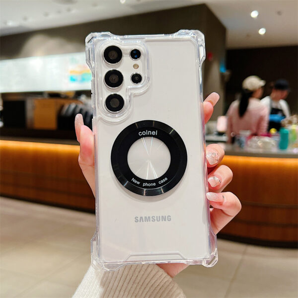 Transparent Magnetic For Magsafe Phone Case For Samsung Galaxy S24 Ultra S23 Plus S22 Ultra Hanging Hole Shockproof Clear Cover
