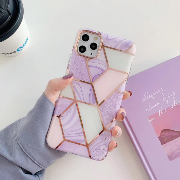For Apple Iphone15promax 14plus Plating Stitching Marble Phone Case 12 Double-sided Lamination For Geometry 13pro Phone Case