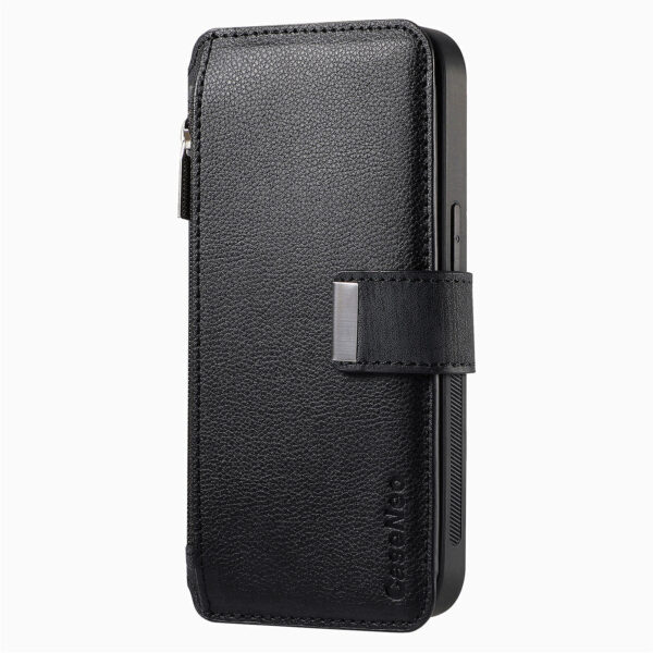For iPhone 17 Air 16 15 14 13 12 11 XS Max XR 8 7 6 Plus Wallet Case, Zipper Storage Design, Detachable Magnetic Flip Folio Cover