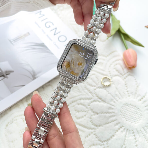 For Apple Watch Bands 49mm 45mm 41mm 40mm 44mm Women Pearl Metal Strap Diamond Protective Case for iWatch Ultra 8 7 6 5 4 3 SE