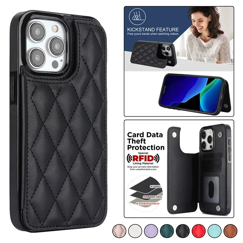 • Lightweight Leather Wallet Card Phone Case for iPhone 17 Air 16 15 Pro Max 14 Plus 13 12 Mini 11 X XS XR 8 7 SE 2022 Flip Stand Cover Etui $3.05