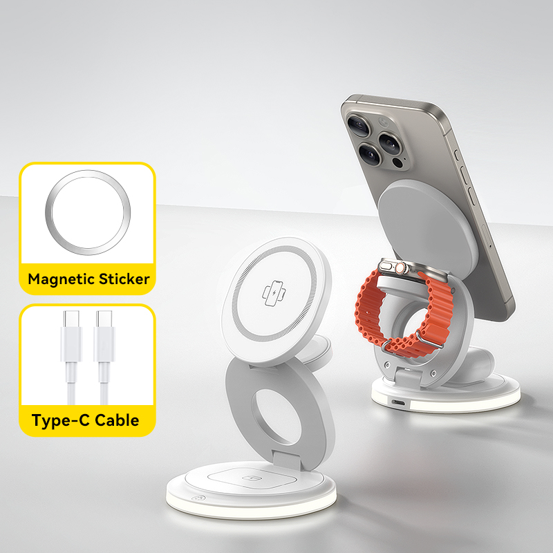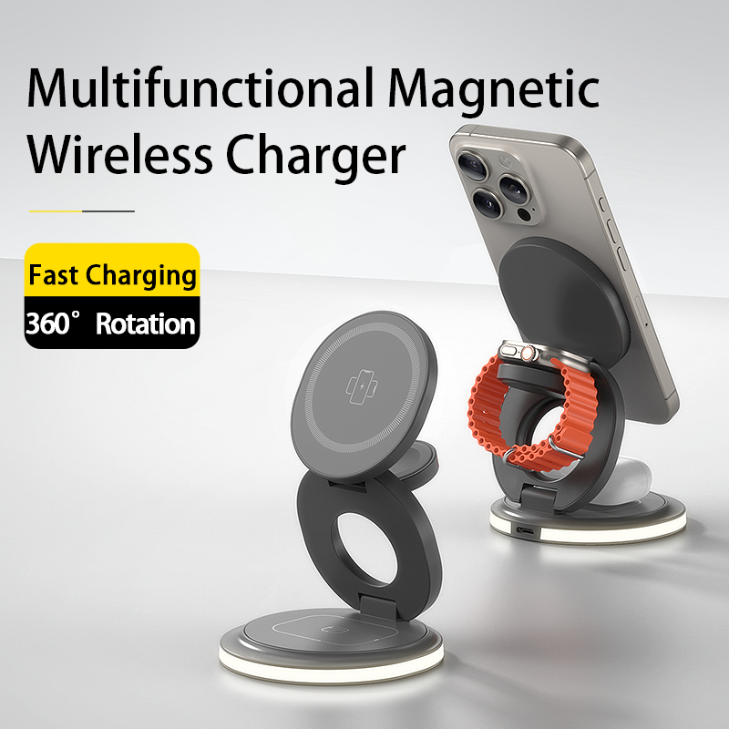 3 In 1 Wireless Charger Fast Charging Station Stand Dock 360 Rotation Base for iPhone 15 14 13 12 Pro Max Watch Airpods