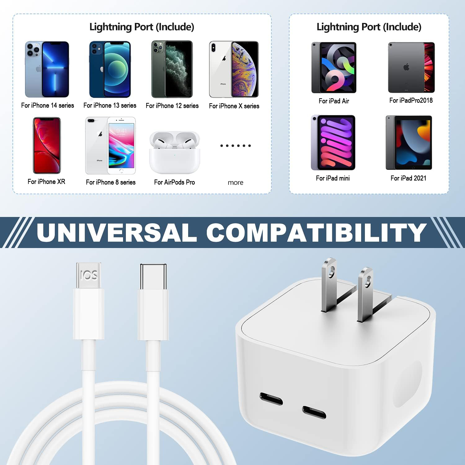 35W PD Fast Charger For iPhone 14 13 12 11 Pro Max XR XS 8 Plus Fast Charging For MacBook iPad Airpods USB C To ios Cable