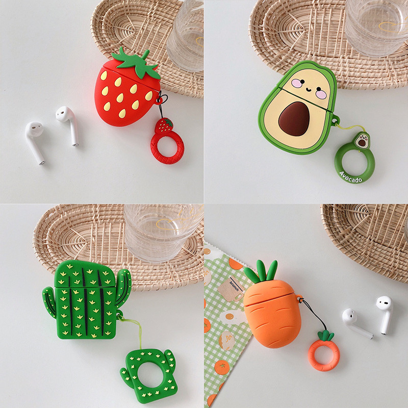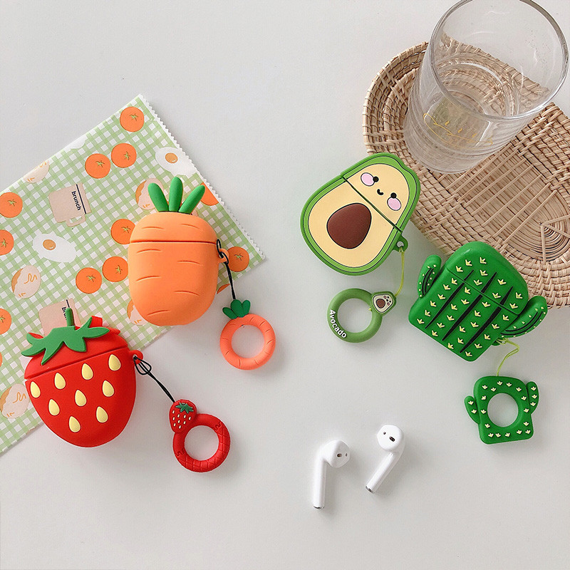 3D Fruit avocado strawberry carrot cactus Headphone Earphone soft case for Apple airpods 1 2 airpods pro Wireless Headset cover