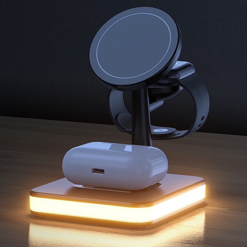4 in 1 Wireless Station Fast Charger LED Night Light for iPhone 12 13 Airpods 3 2 Pro iWatch Compatible with Magsafe Case