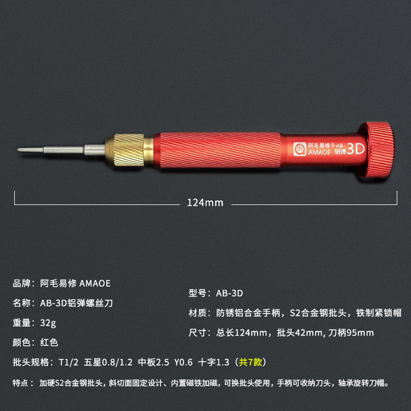 Amaoe Aluminum Bullet 3D Screwdriver for Android Phone Maintenance Disassembly Repair Screwdriver Replaceable Batch Head