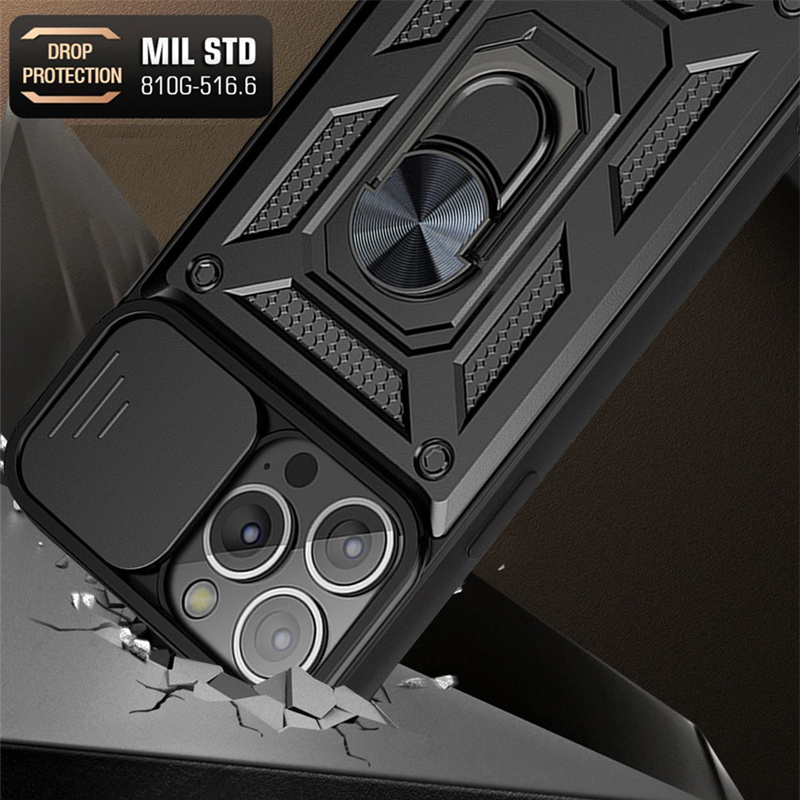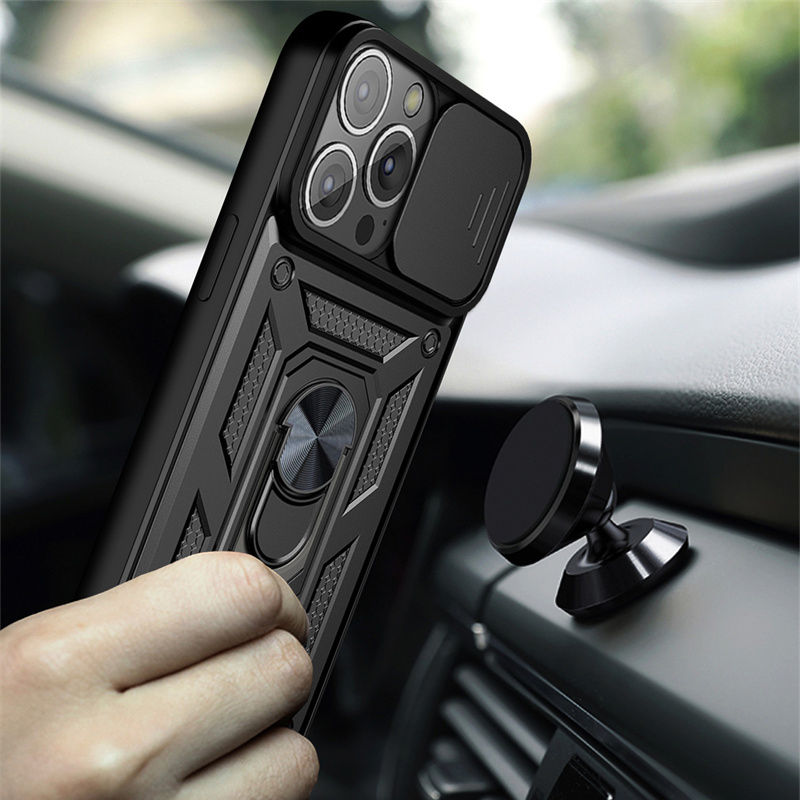 Armor Slide Camera Protection Phone Case For iPhone 14 13 12 11 Pro Max XR XS Max 7 8 Plus Magnetic Ring Holder Shockproof Cover