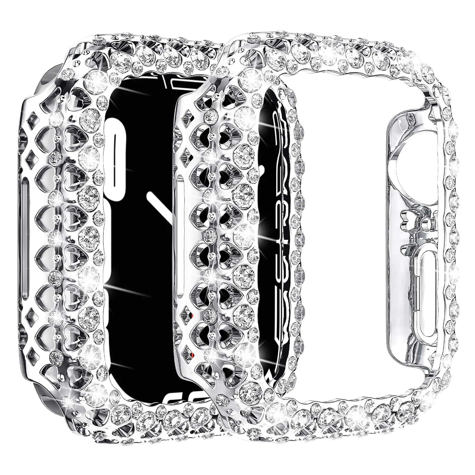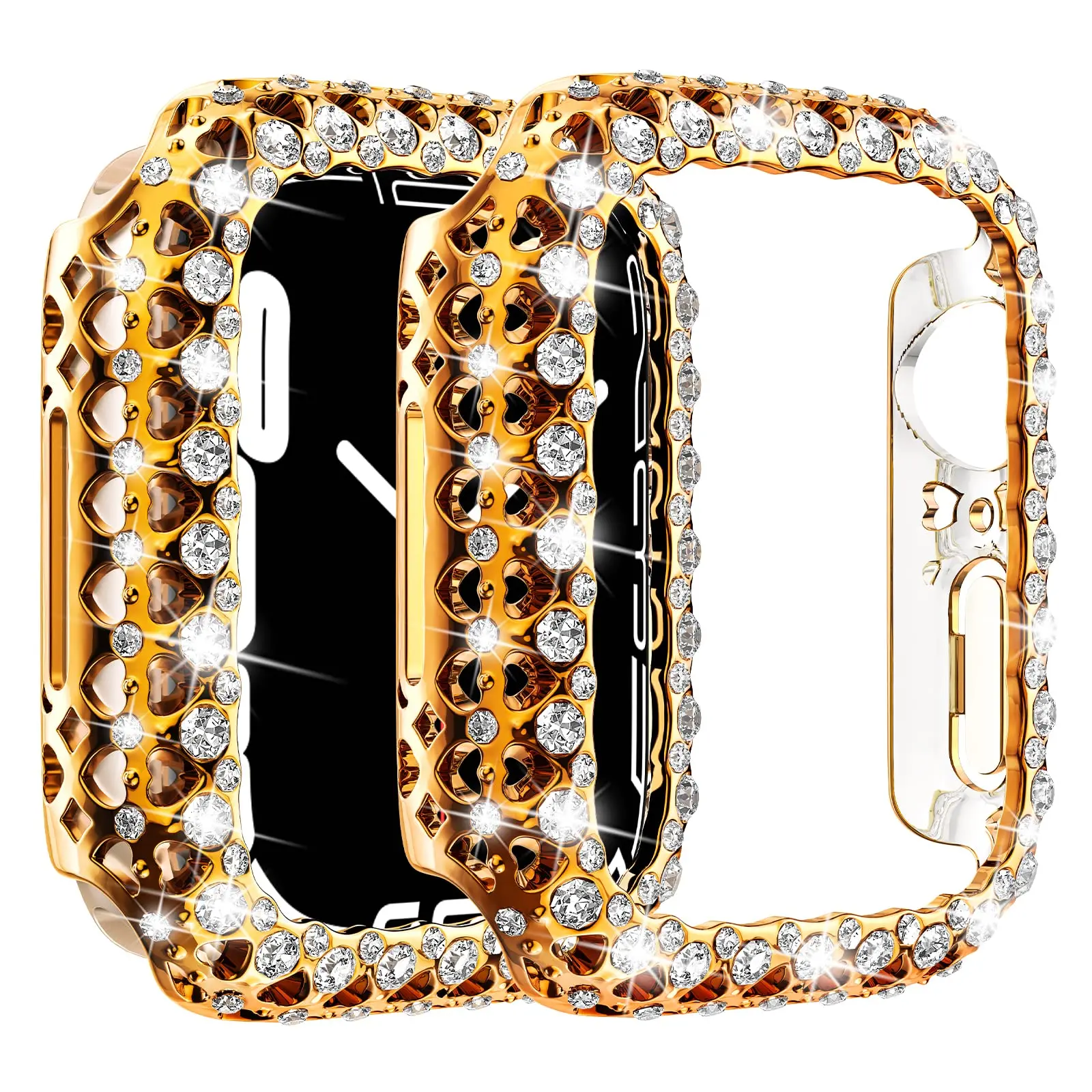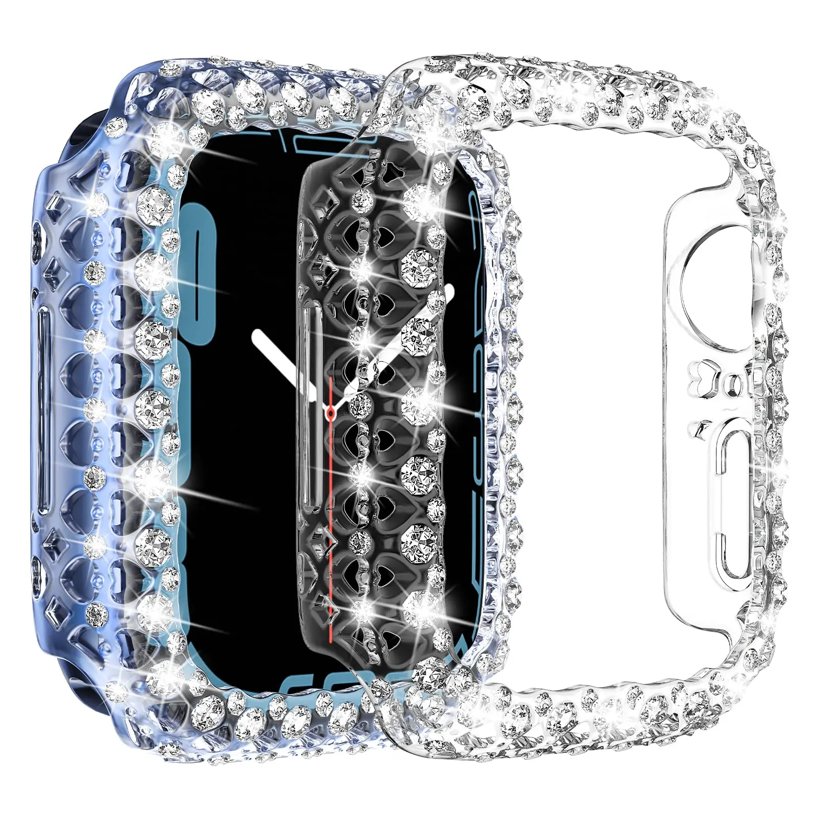 Bling Crystal Bumper Cover for Apple Watch Case 41mm 45mm Diamond PC Protective Hard PC Frame for IWatch Series 9 8 7 41mm 45 mm