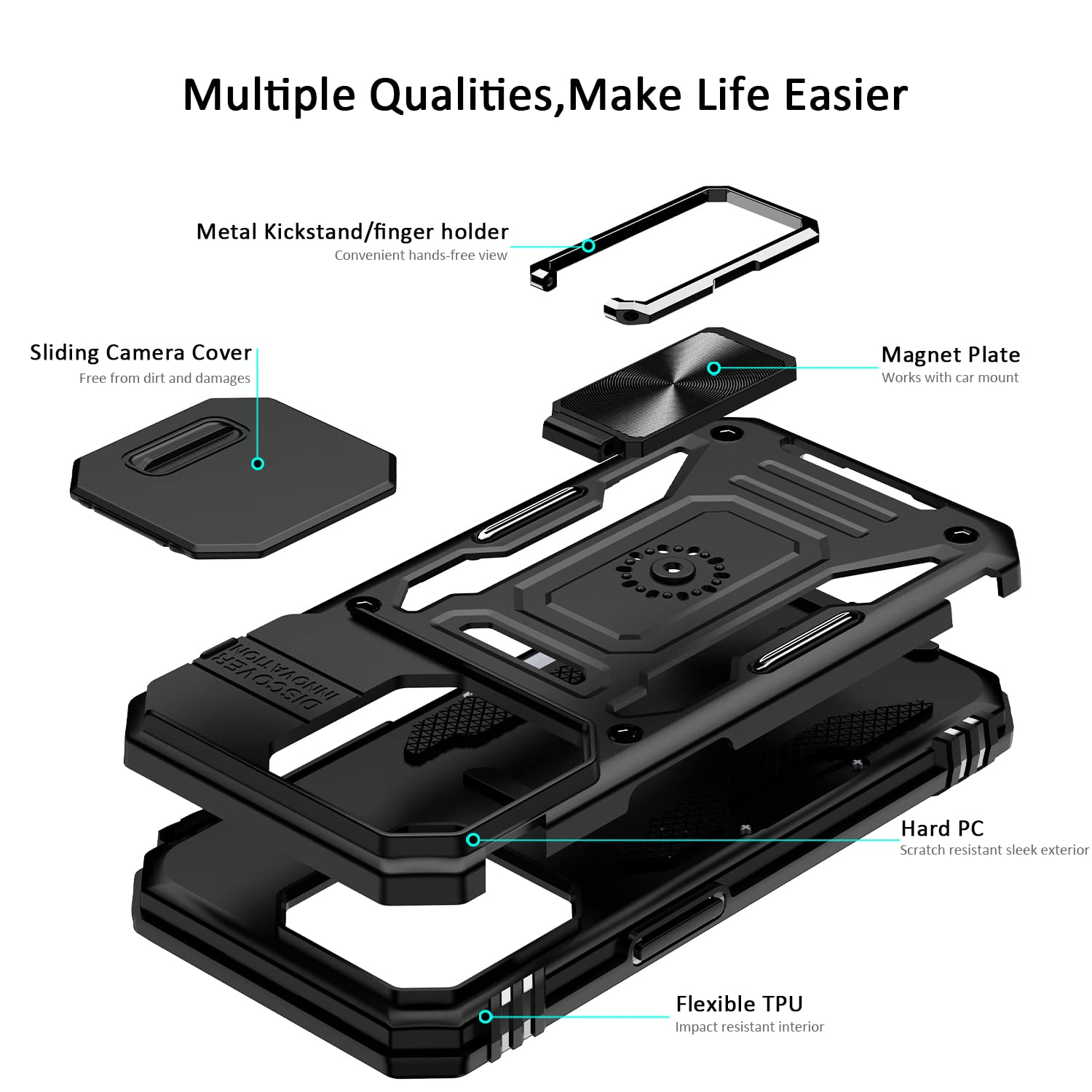 Case For iPhone 16 15 14 13 12 11 Pro XS Max Plus XR 8 7 Plus SE 2022 2020 Ring Stand Armor Anti-fall Slide Camera Kickstand Cover
