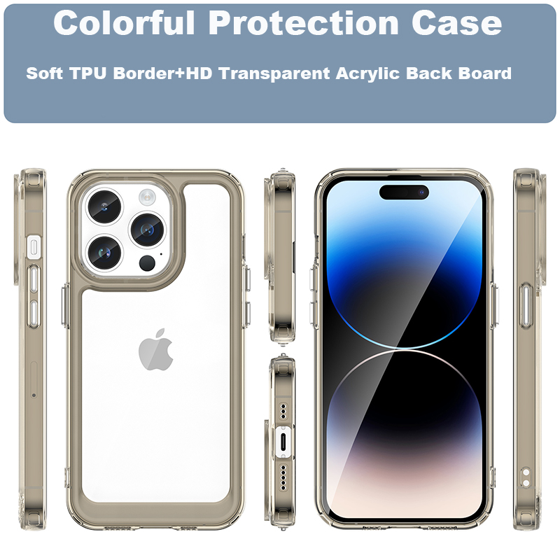 Colored TPU Soft Border+PMMA Hard Back Panel Case For iPhone 14 Pro Max 13 12 11 Pro Max 14 Plus Bumper Transparent Rear Cover