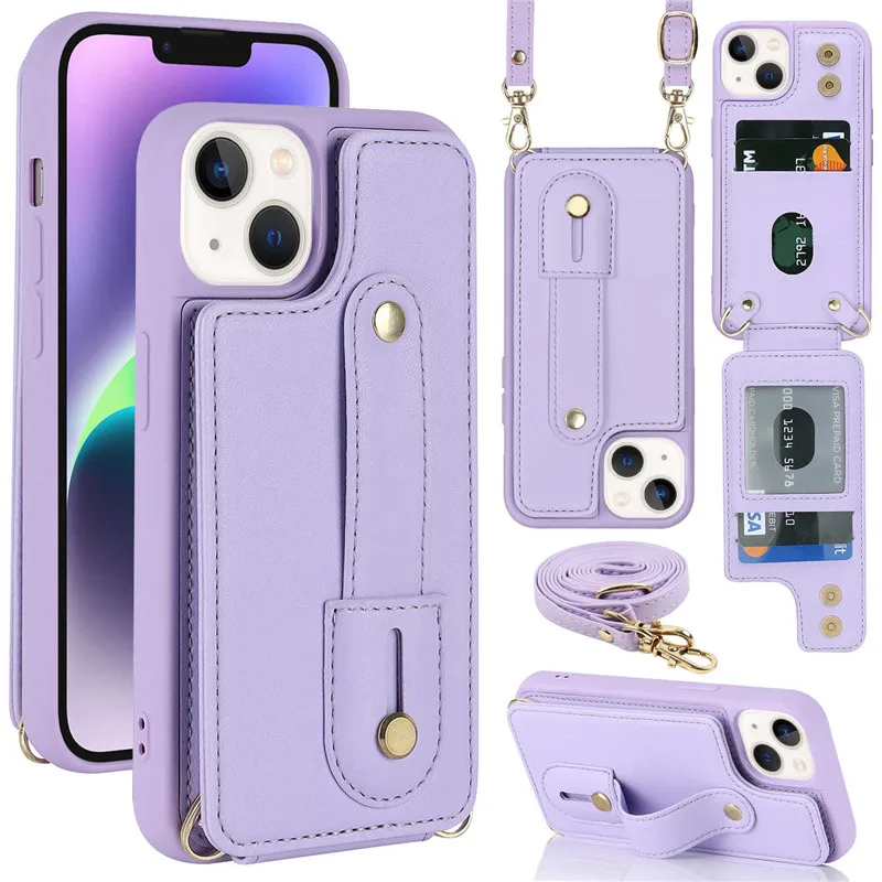 Crossbody Lanyard Leather Wallet Card Phone Case for iPhone 17 Air 16 15 Pro Max 14 Plus 13 12 11 X XR XS SE 2022 8 7 Wrist Strap Cover