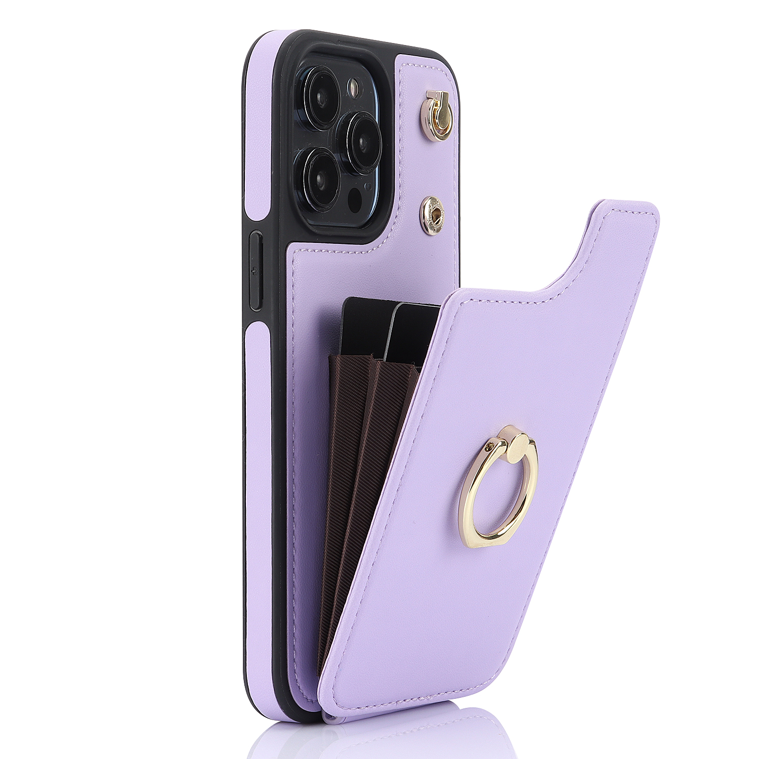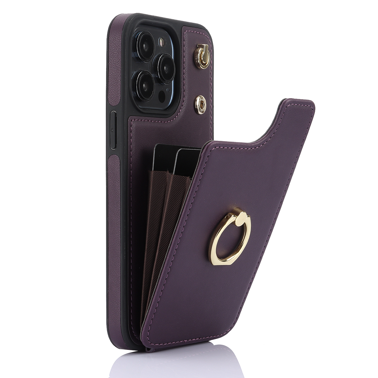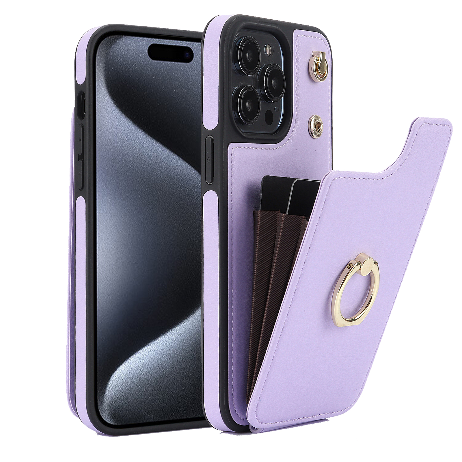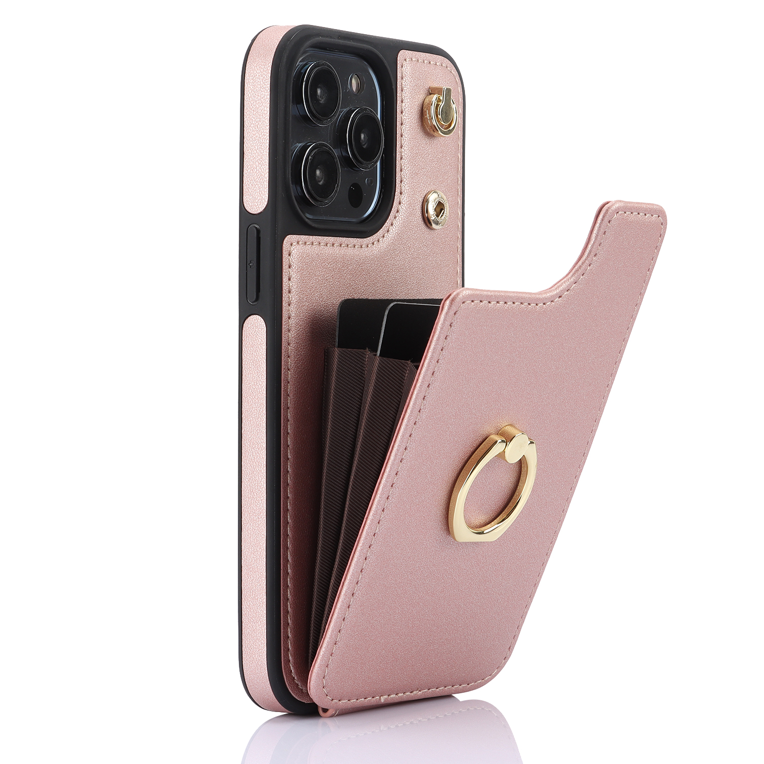 Crossbody Shockproof Leather Card Holder Wallet Case for iPhone 15 Pro, 14, 13, 12, 11, XR, XS, Ring Kickstand Protective Cover