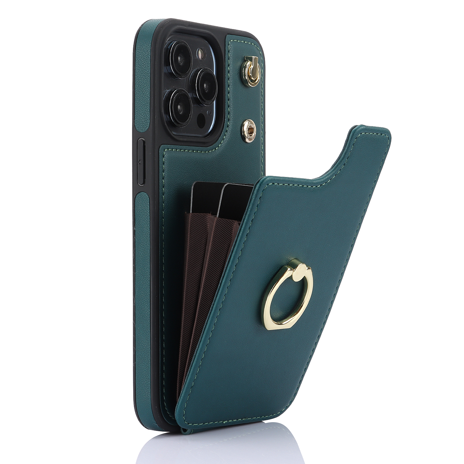 Crossbody Shockproof Leather Card Holder Wallet Case for iPhone 17 Air 16 15 Pro, 14, 13, 12, 11, XR, XS, Ring Kickstand Protective Cover