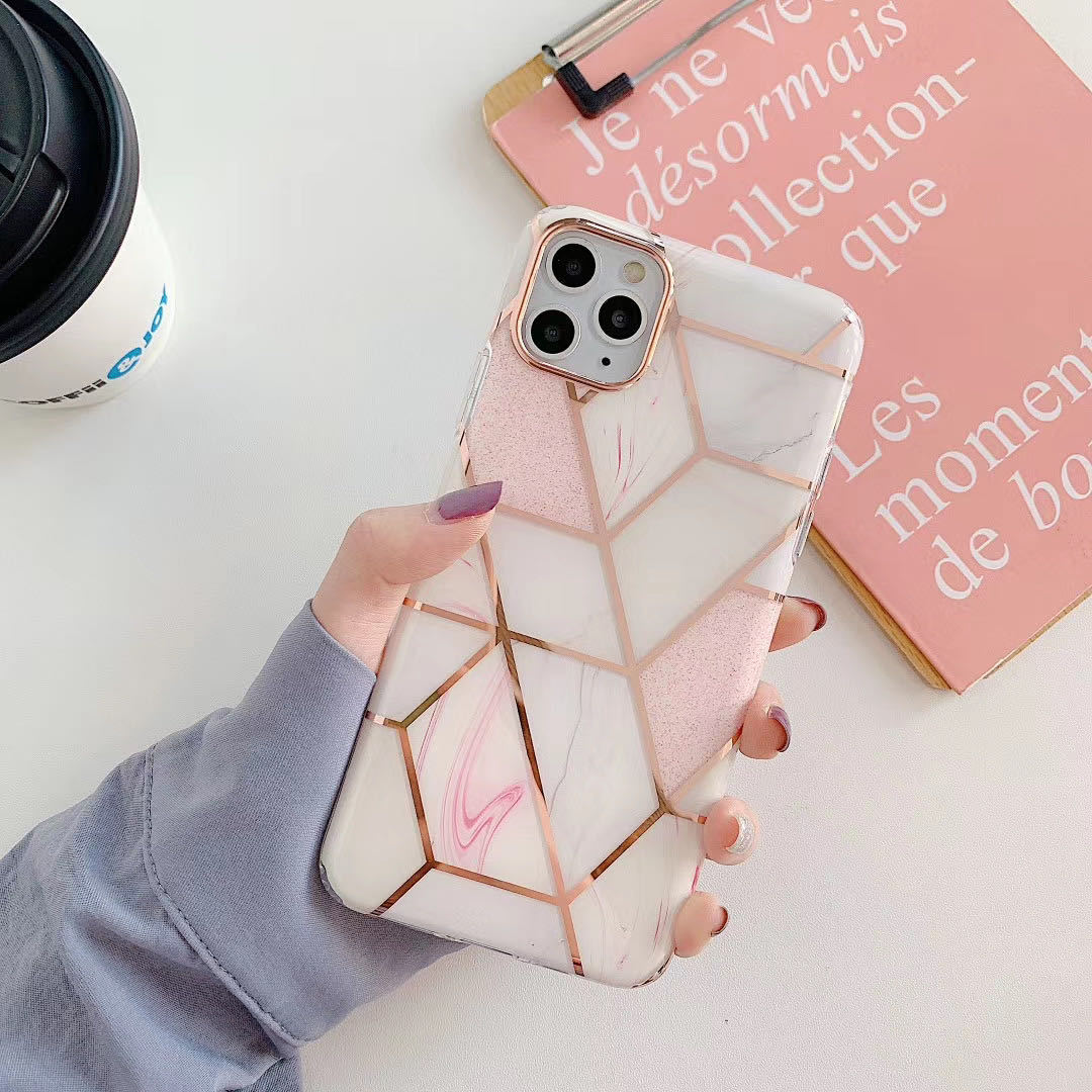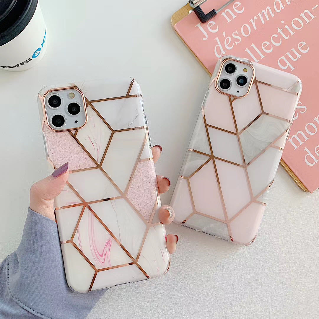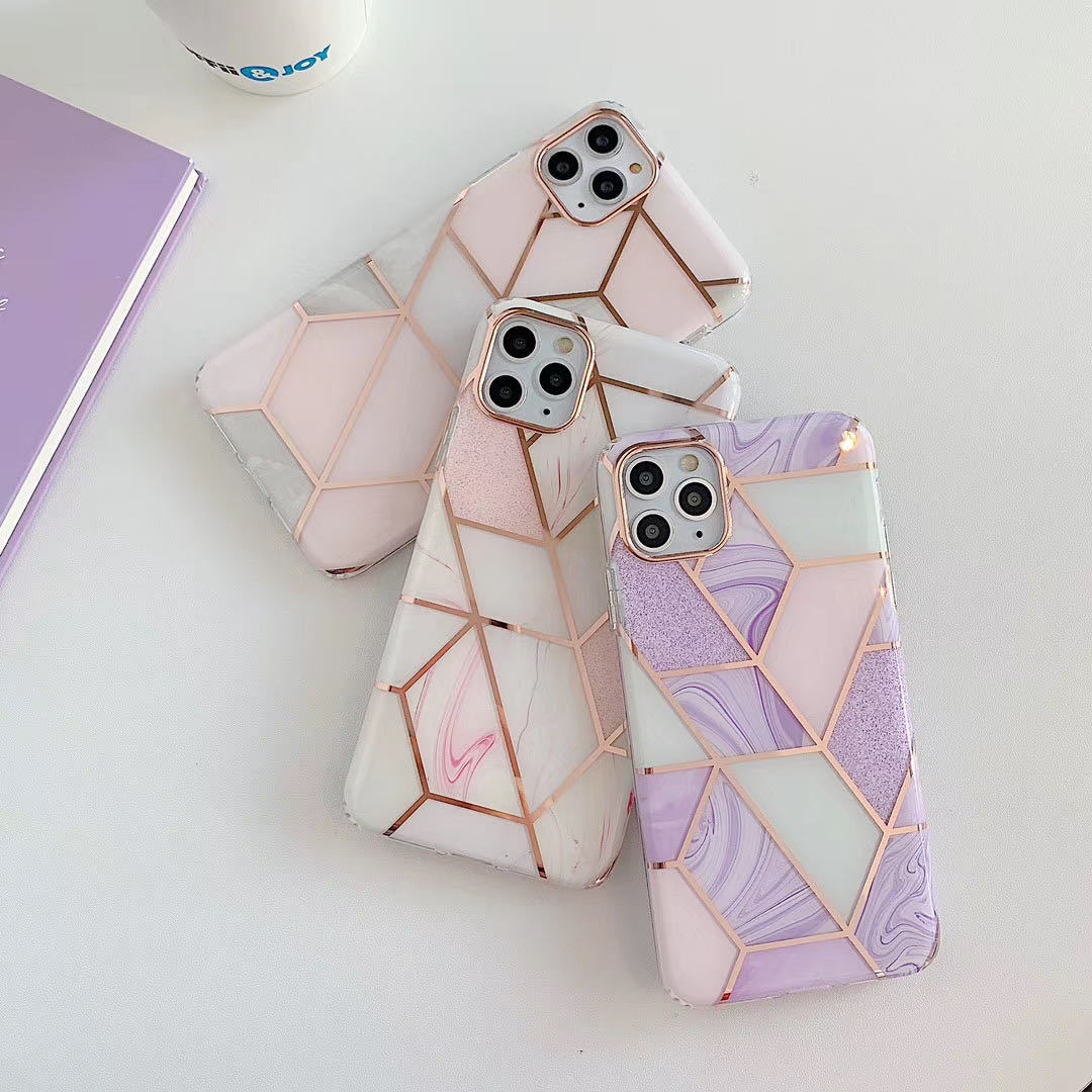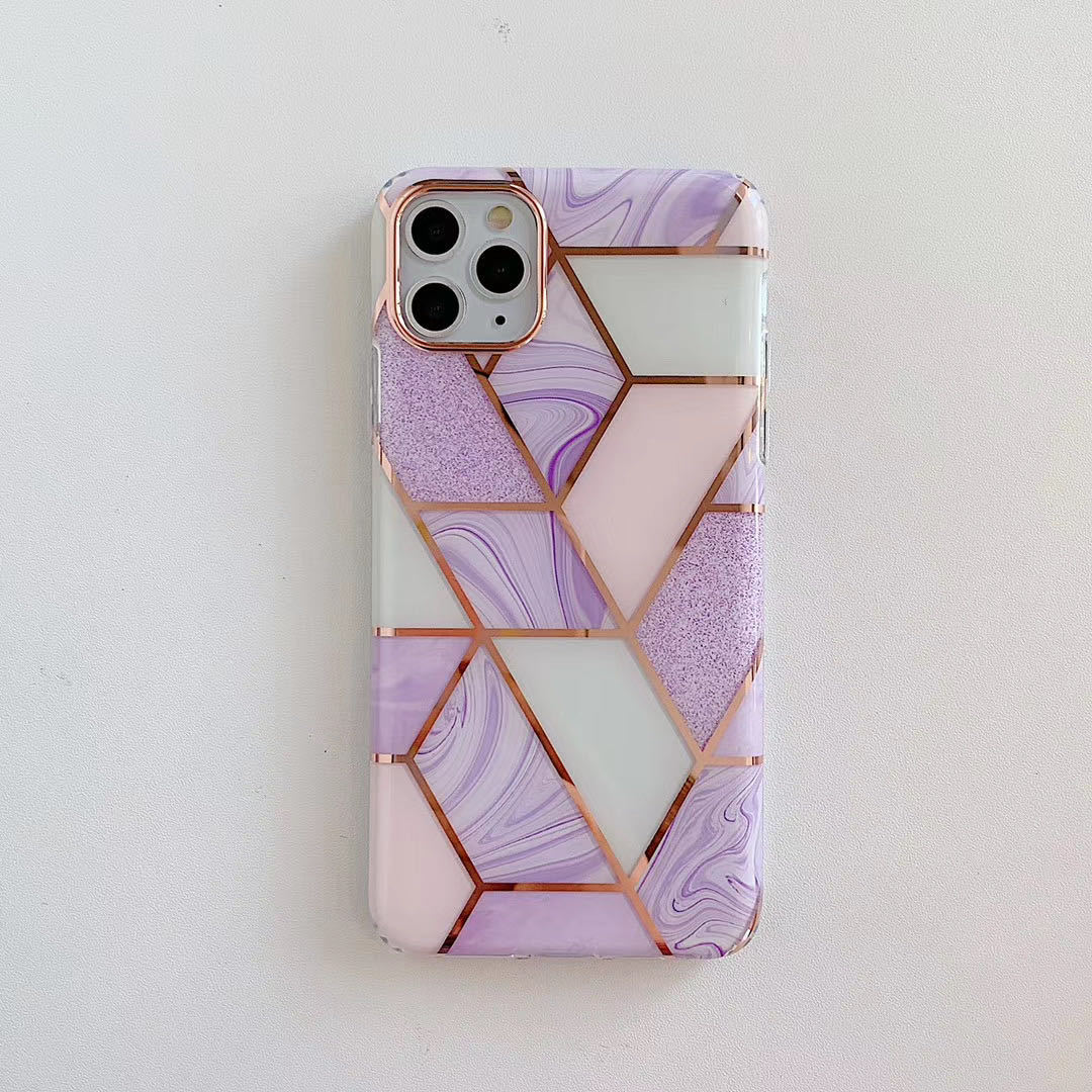 For Apple Iphone15promax 14plus Plating Stitching Marble Phone Case 12 Double-sided Lamination For Geometry 13pro Phone Case