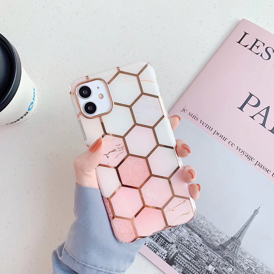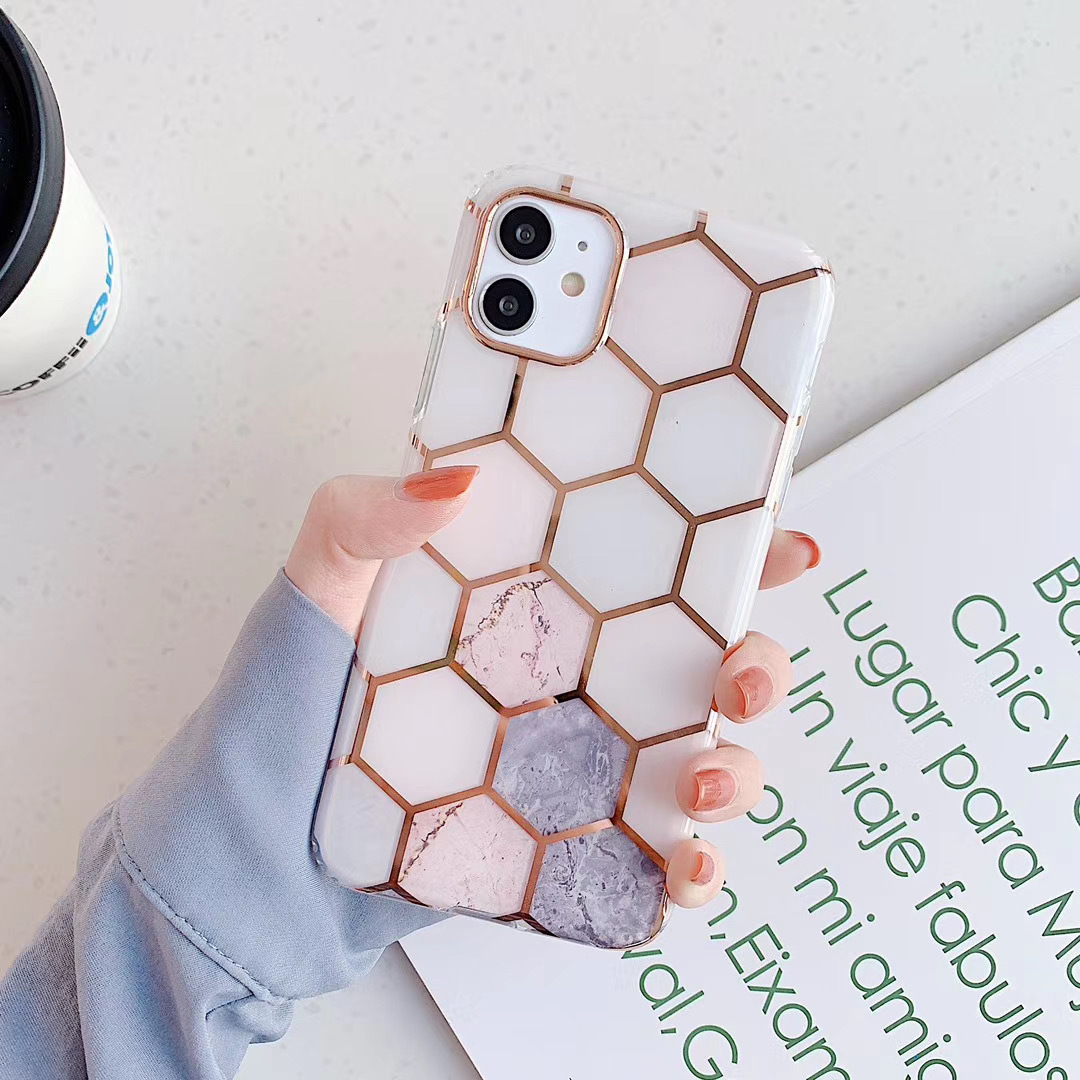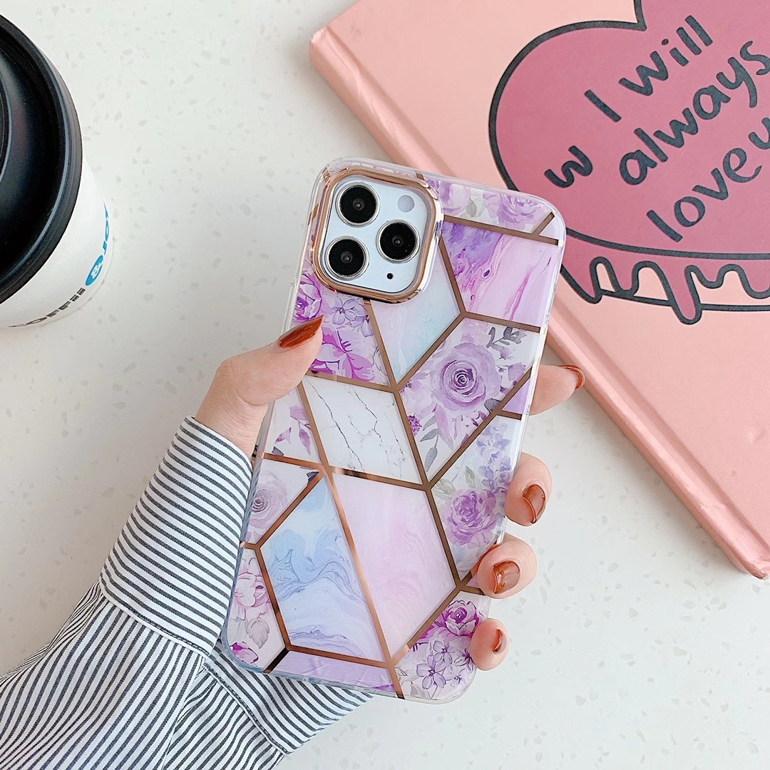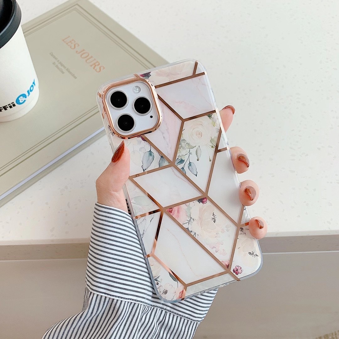 For Apple Iphone15promax 14plus Plating Stitching Marble Phone Case 12 Double-sided Lamination For Geometry 13pro Phone Case