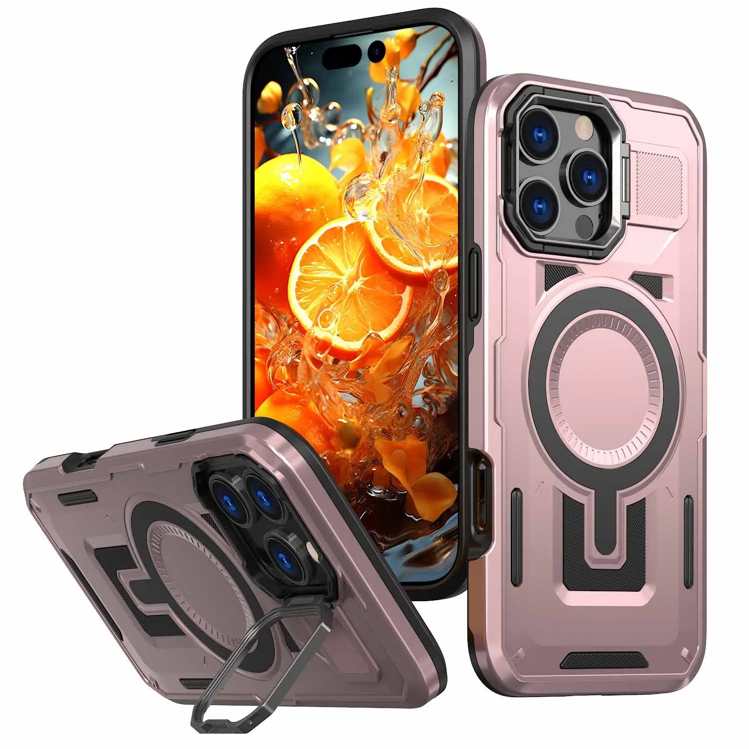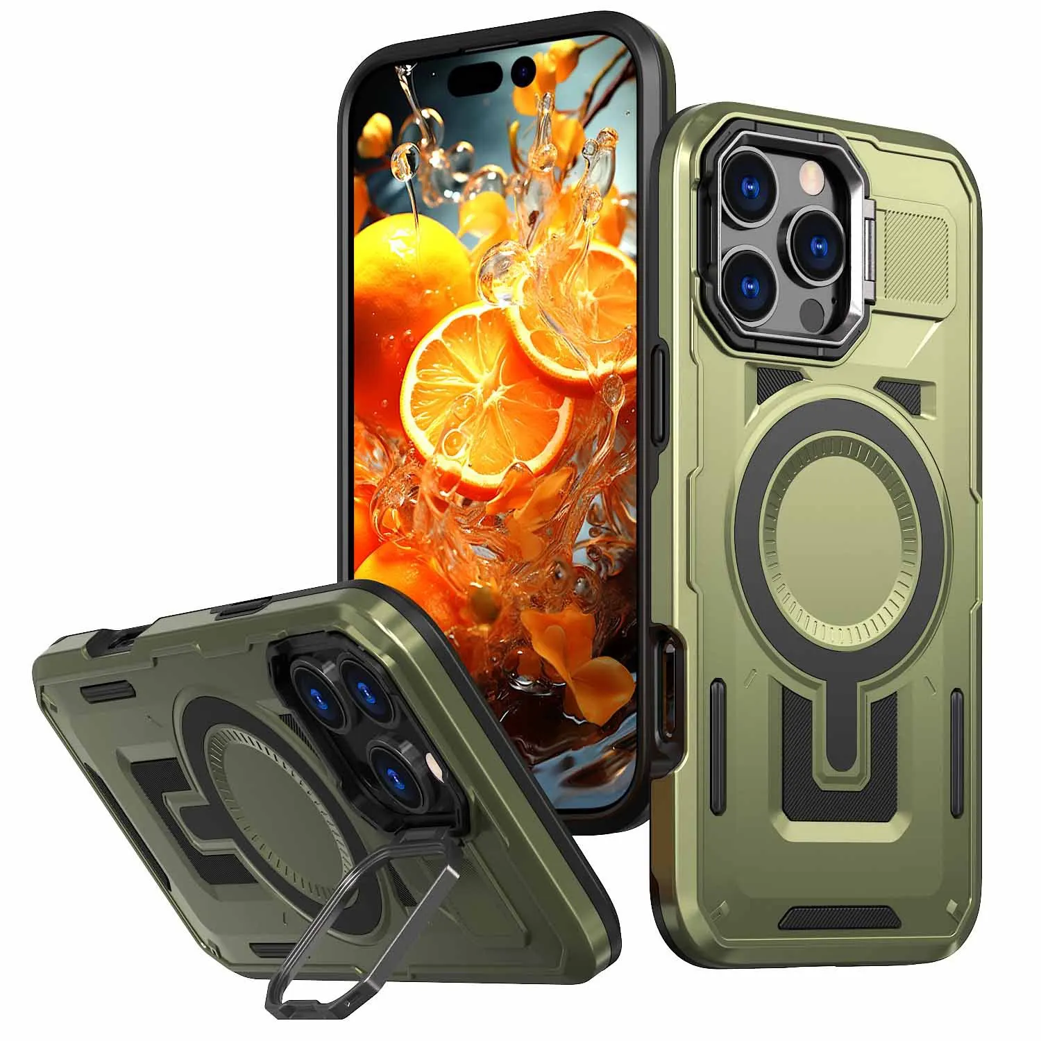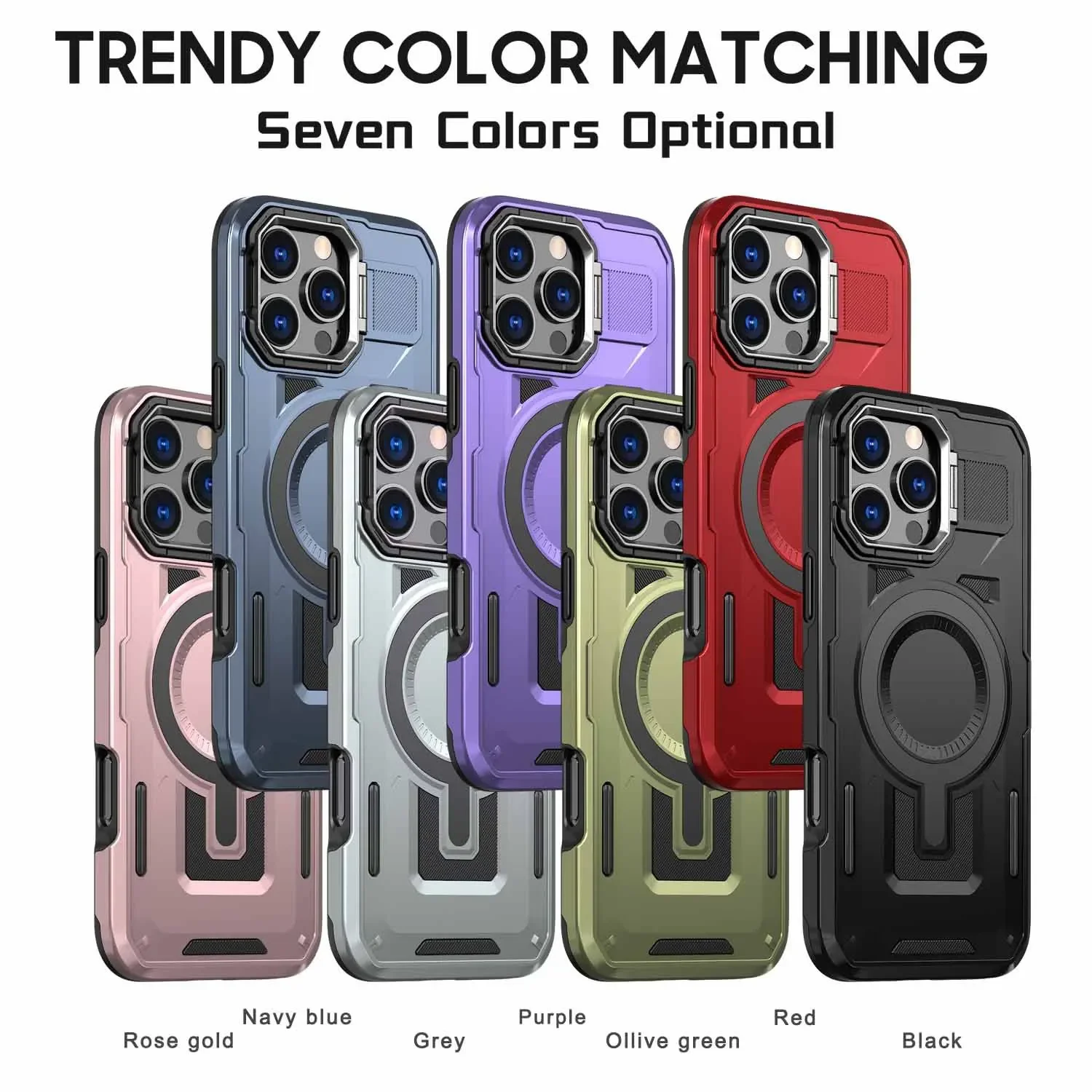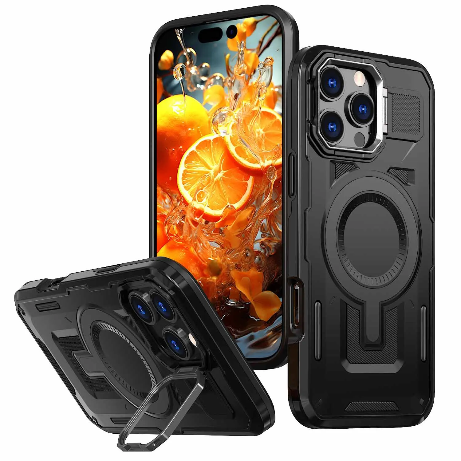 For MagSafe Magnetic Shield Frame Holder Kickstand Phone Case For iPhone 16 Pro Max 15 14 Plus 13 12 11 XR Protective Back Cover