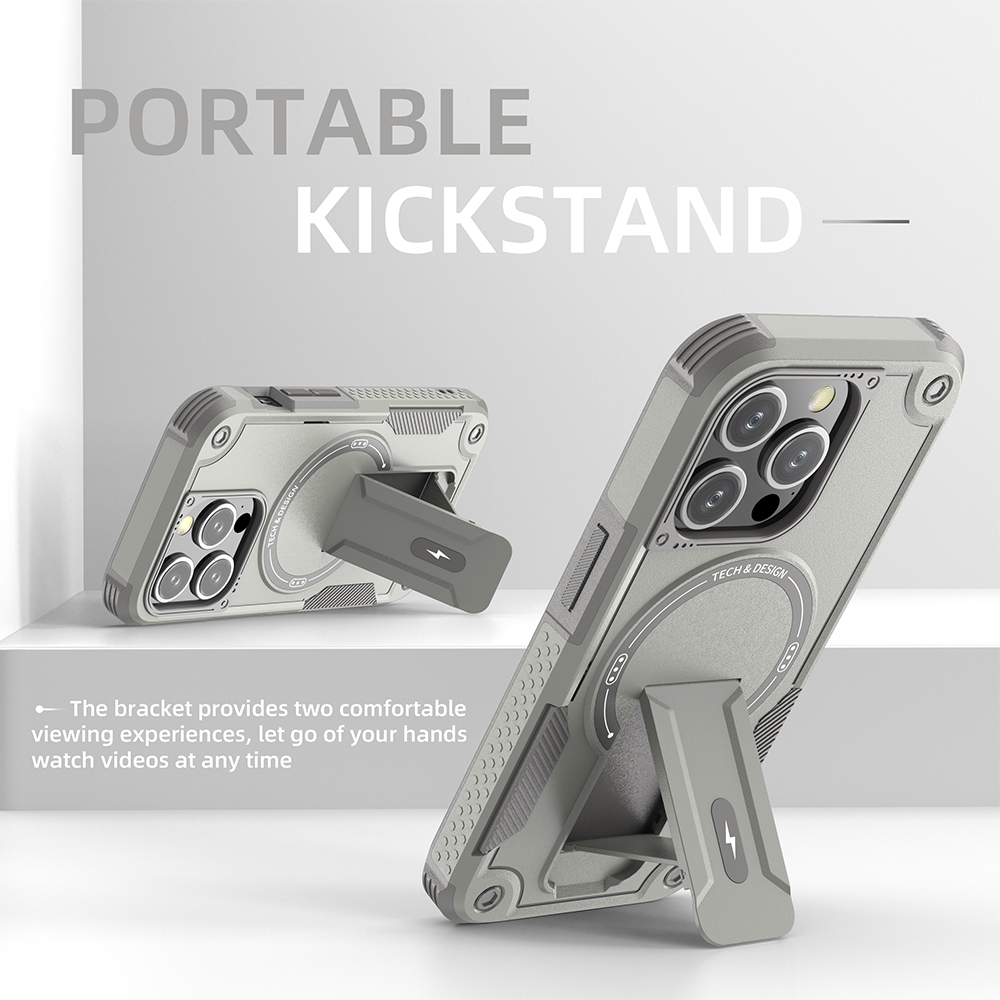 For Magsafe Magnetic Wireless Charge Phone Case For iPhone 16 15 14 13 Pro Max Plus Stand Cases Shockproof Hard Back Cover