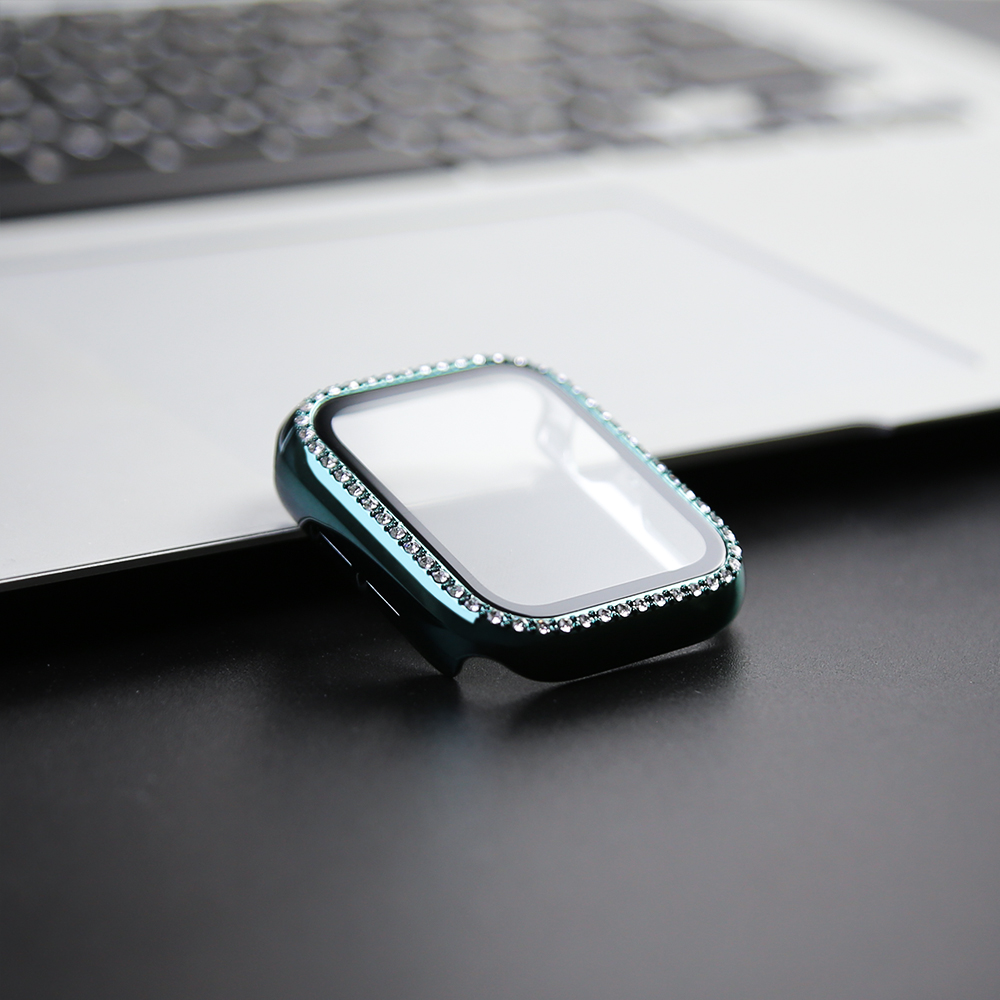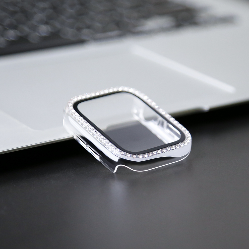 Glass+Watch Cover for Apple Watch 10 45mm 41mm 40mm 44mm 38mm 42mm 46mm Bling Case Diamond Bumper Protector for iwatchSE 9 8 7 6 5 4 3 2