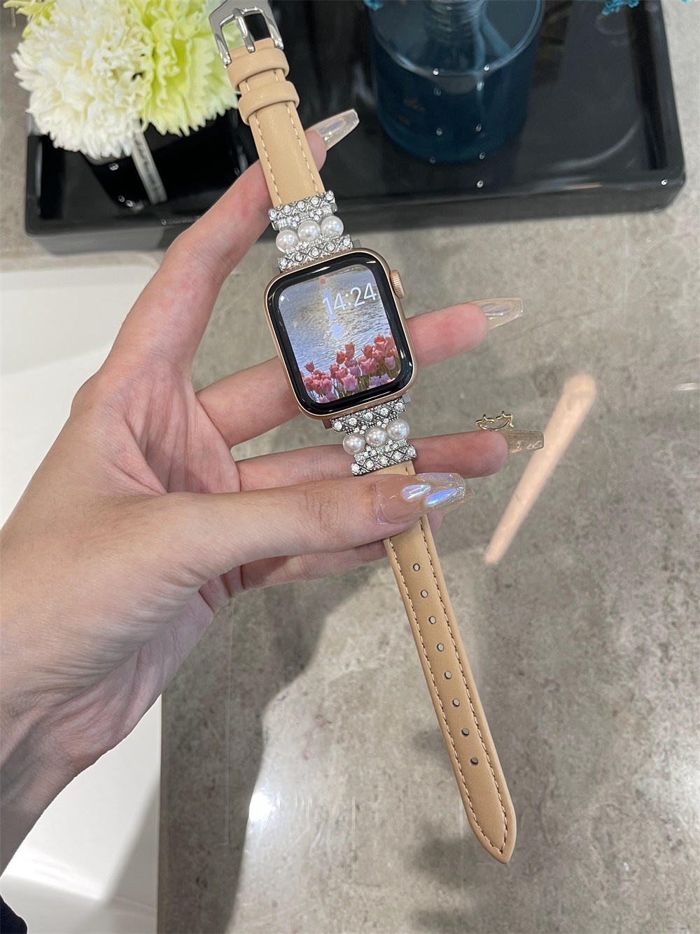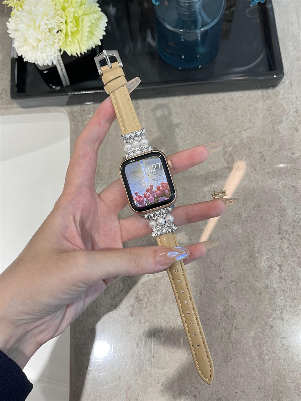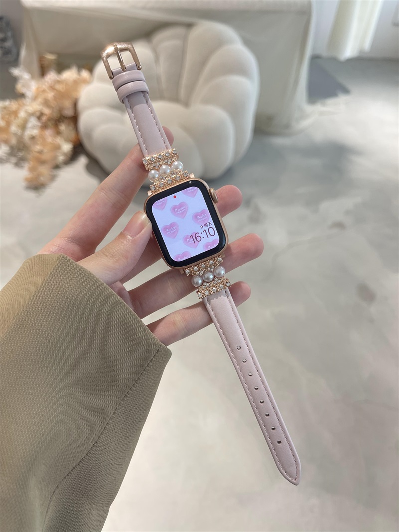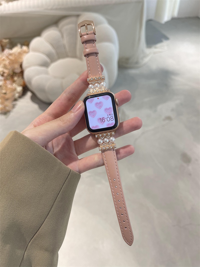 Jewelry band For Apple Watch ultra-2-9-8-7-6-5-4-3-SE 49mm 45mm 41mm 42-40mm-44mm Women Luxury diamond slim Leather iWatch strap