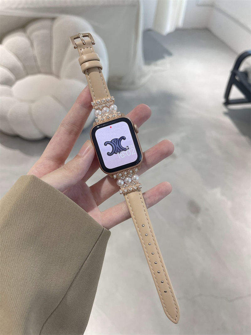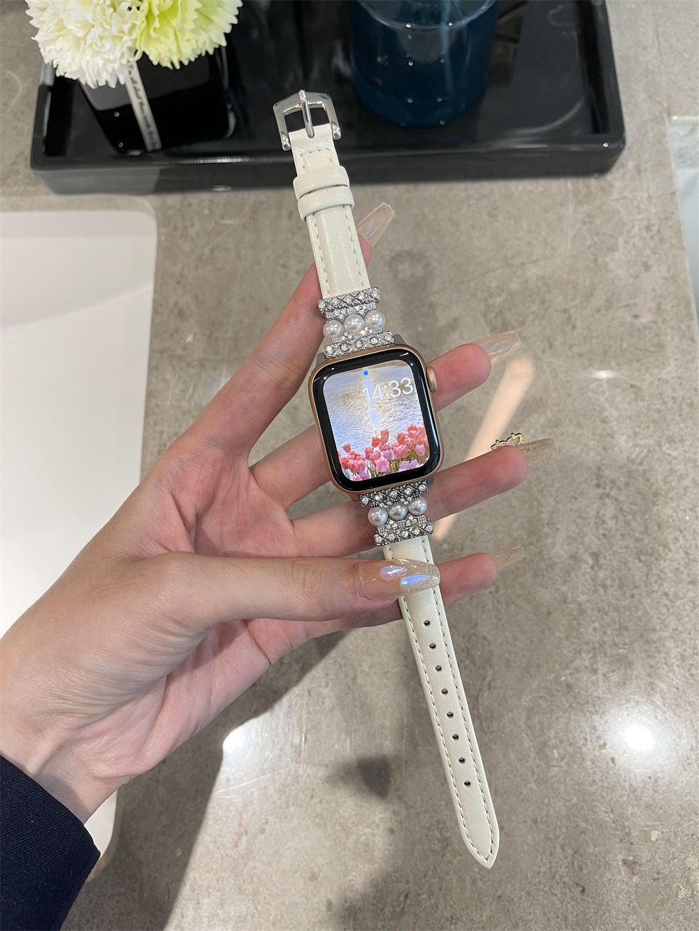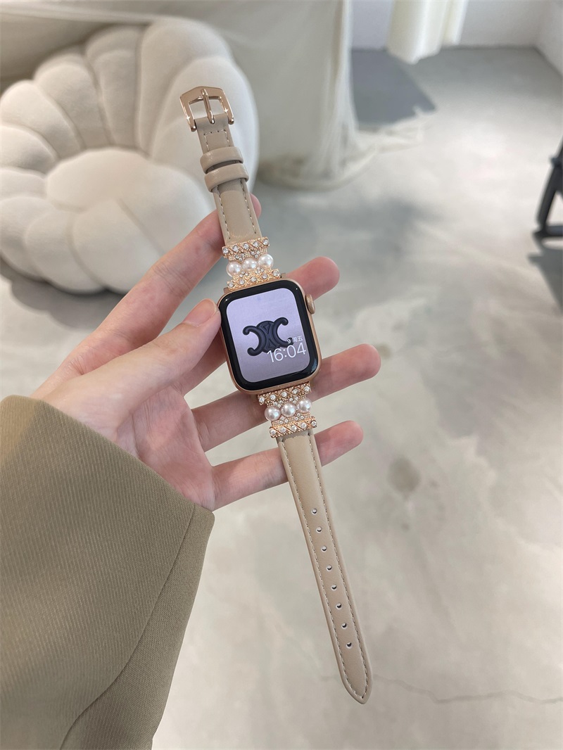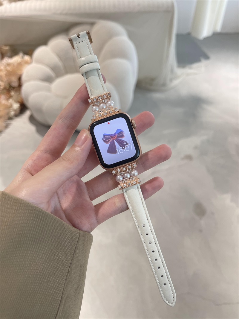 Jewelry band For Apple Watch ultra-2-9-8-7-6-5-4-3-SE 49mm 45mm 41mm 42-40mm-44mm Women Luxury diamond slim Leather iWatch strap