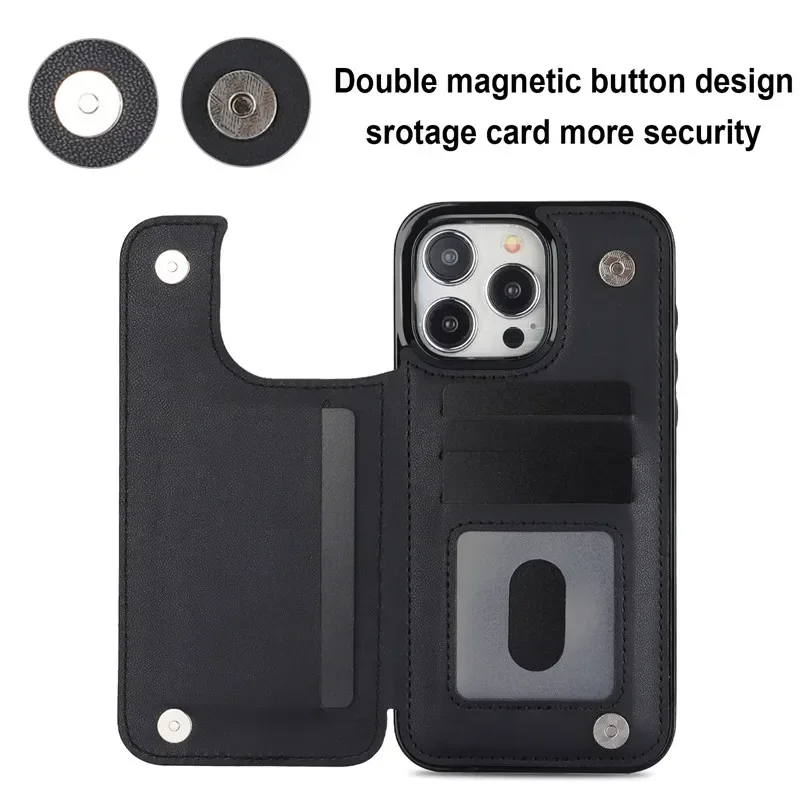Lightweight Leather Wallet Card Phone Case for iPhone 17 Air 16 15 Pro Max 14 Plus 13 12 Mini 11 X XS XR 8 7 SE 2022 Flip Stand Cover Etui