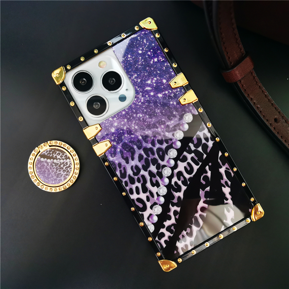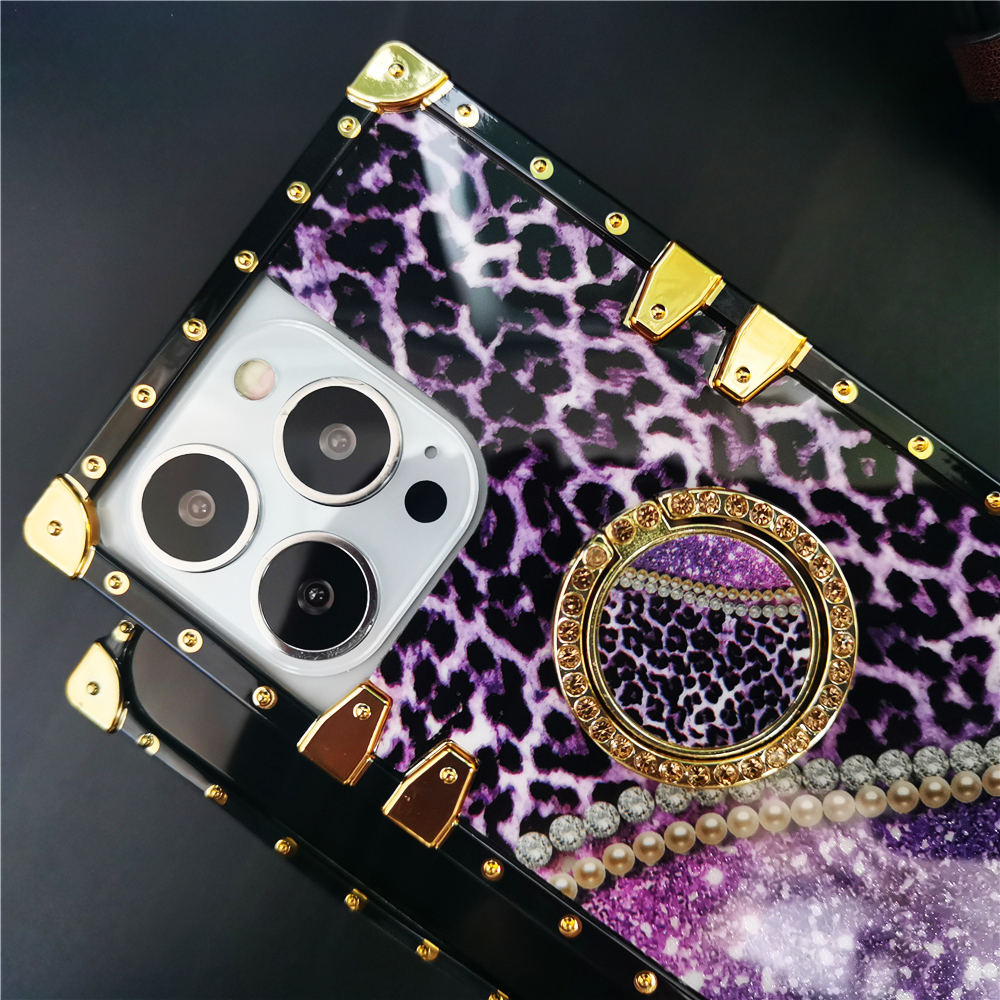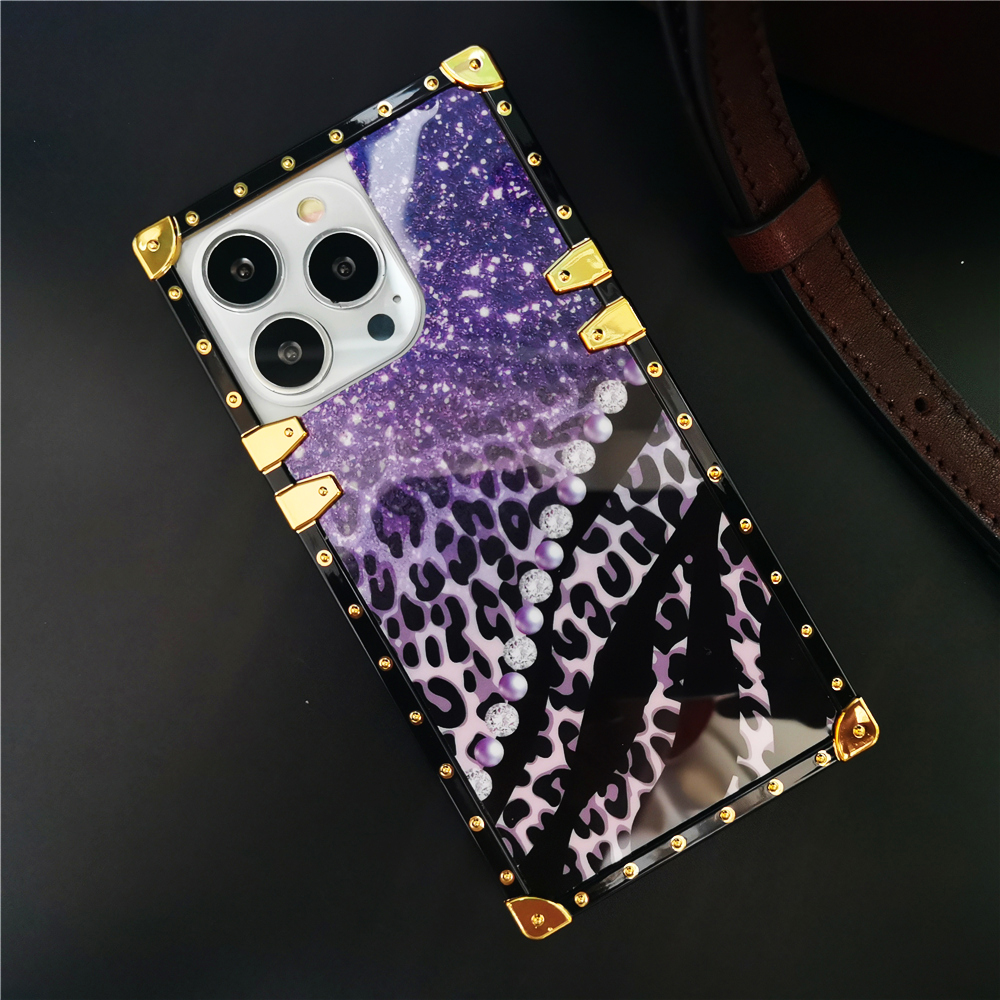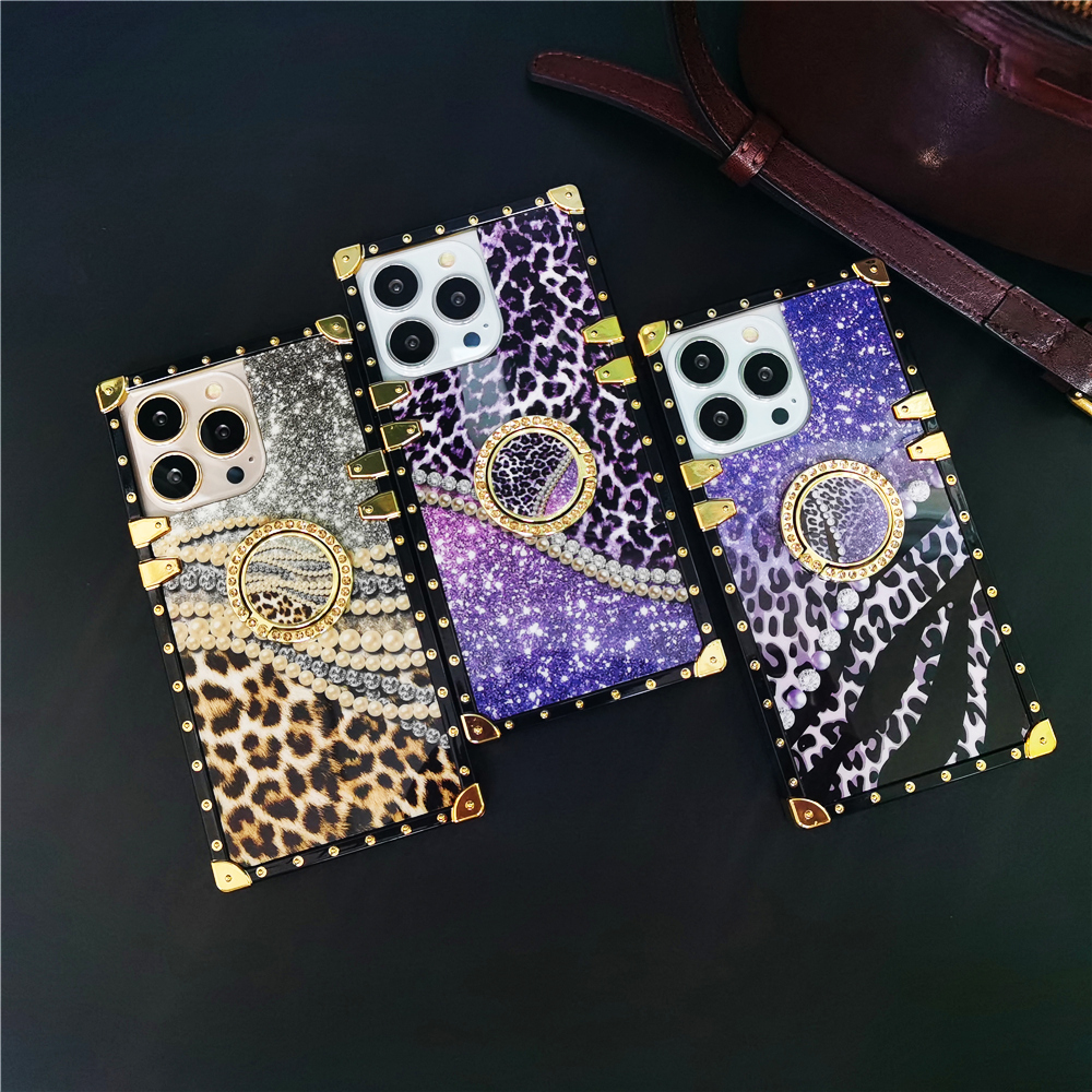 Luxury Bling Diamonds Pearl Leopard Cover For iphone 17 Air 16 15 PRO 14 PRO MAX 11 12 PRO XS XR 8 Square Phone Case For iphone 13 PRO MAX