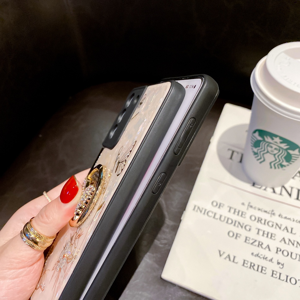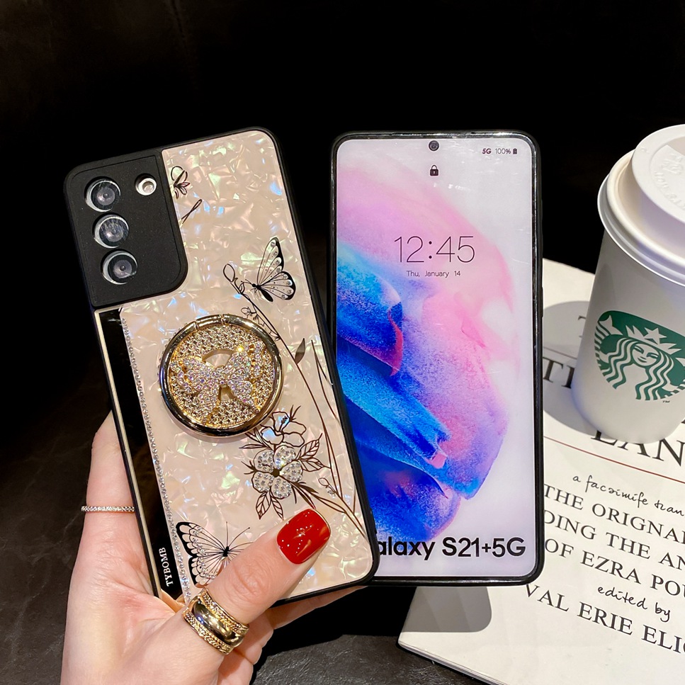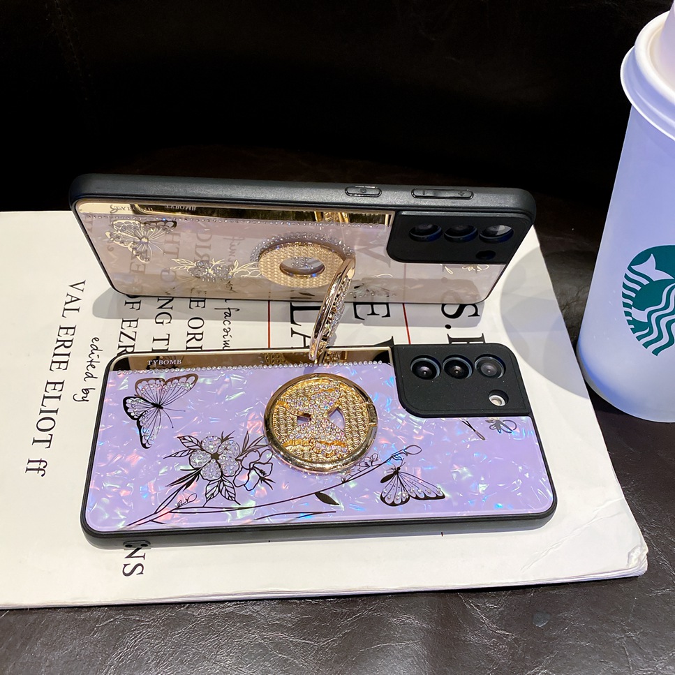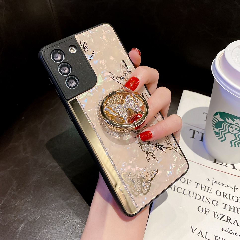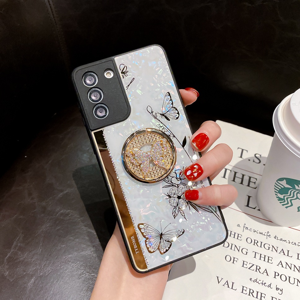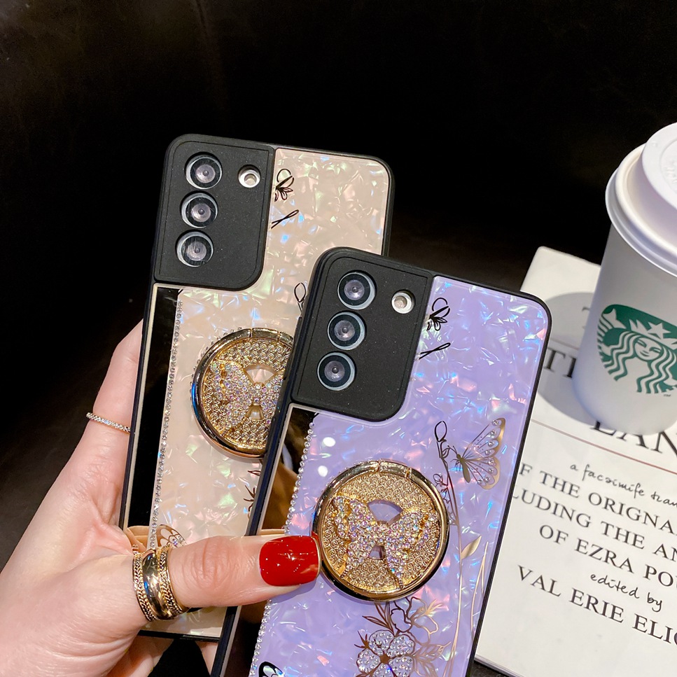 Luxury Butterfly Ring Holder Phone Case For Samsung Galaxy Z Flip3 Z Fold3 4 5 6 A06 A13 A14 A15 A16 A23 A24 A25 A32 A34 A35 A36 A52 A53 A54 A56 A72 Rhinestone Glitter Cover