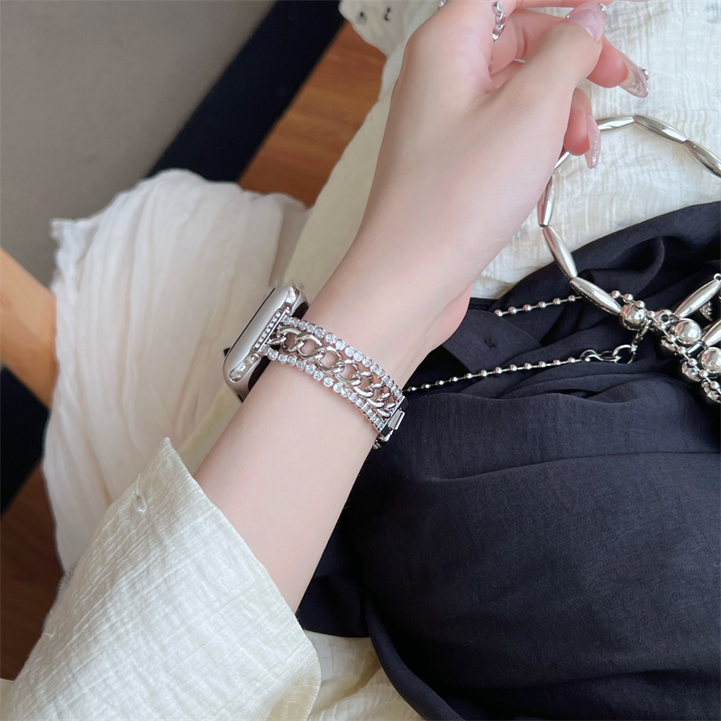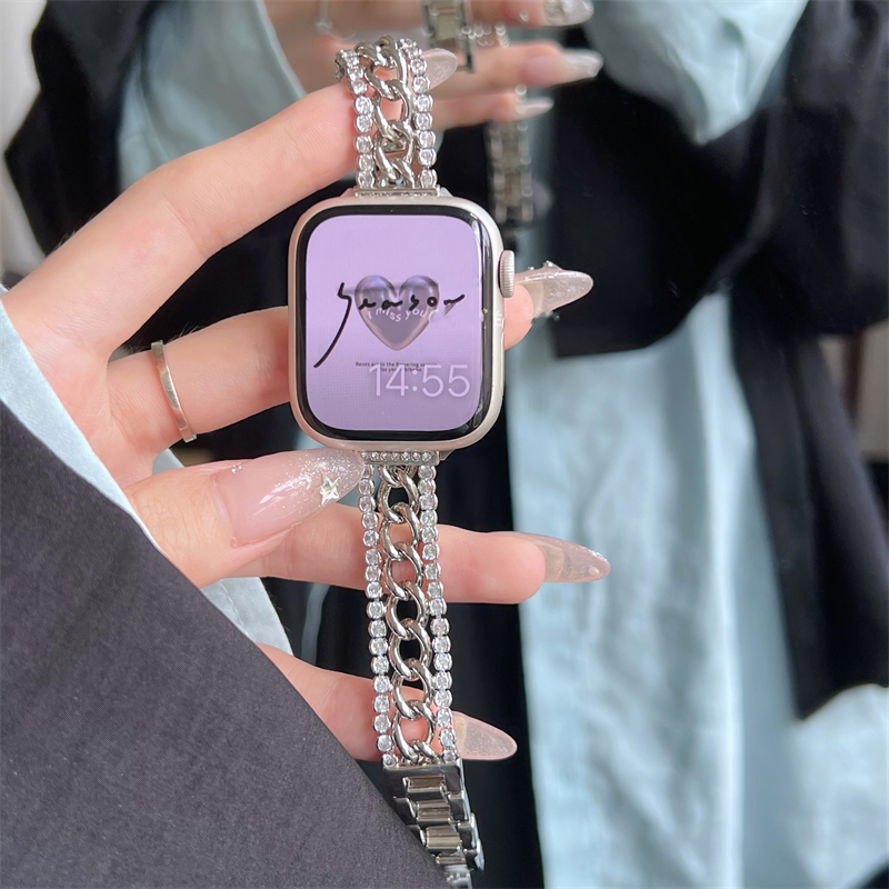Luxury Glitter Drill Metal Strap For Apple Watch Band Ultra 2 49mm 45/44mm 42 38 40 41mm Woman Wrist Chain iwatch 9 8 7 6 SE 5 4