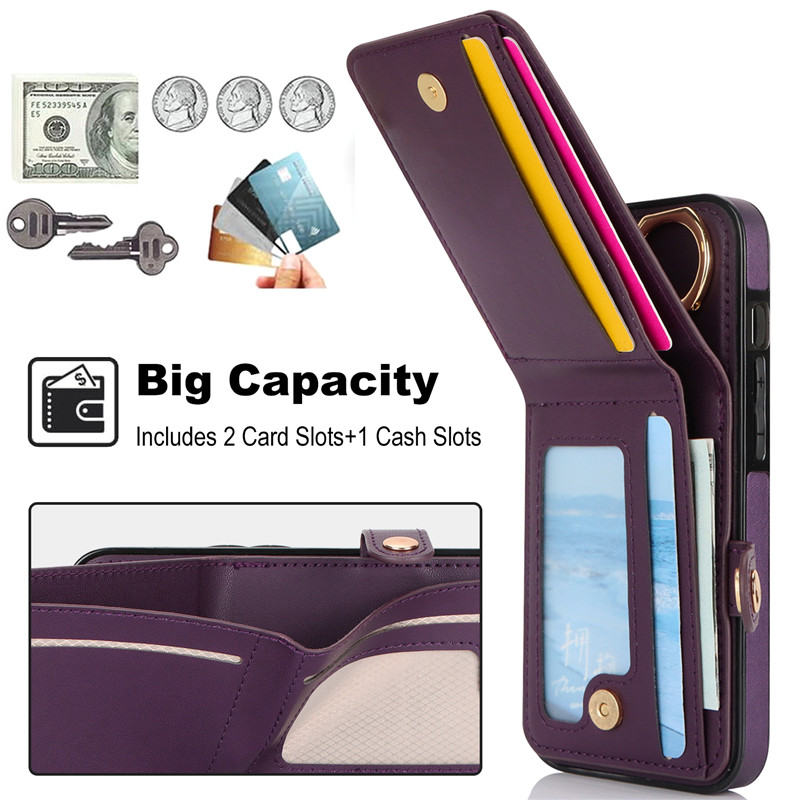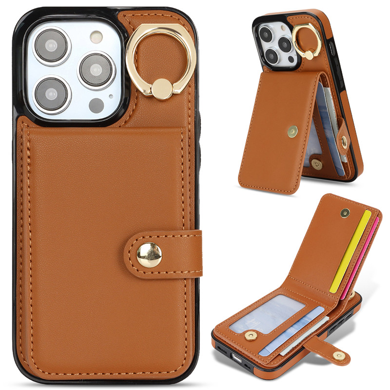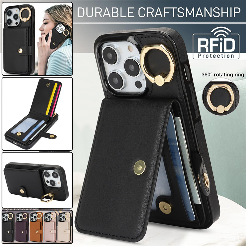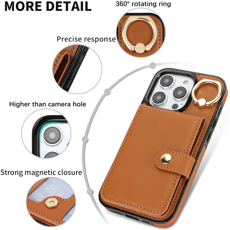 Luxury Ring PU Leather Wallet Card Phone Case for iPhone 15 Pro Max 14 Plus 13 Mini 12 11 X XS XR SE 2022 8 7 Flip Satnd Cover