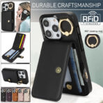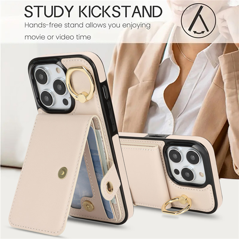 Luxury Ring PU Leather Wallet Card Phone Case for iPhone 17 Air 16 15 Pro Max 14 Plus 13 Mini 12 11 X XS XR SE 2022 8 7 Flip Satnd Cover