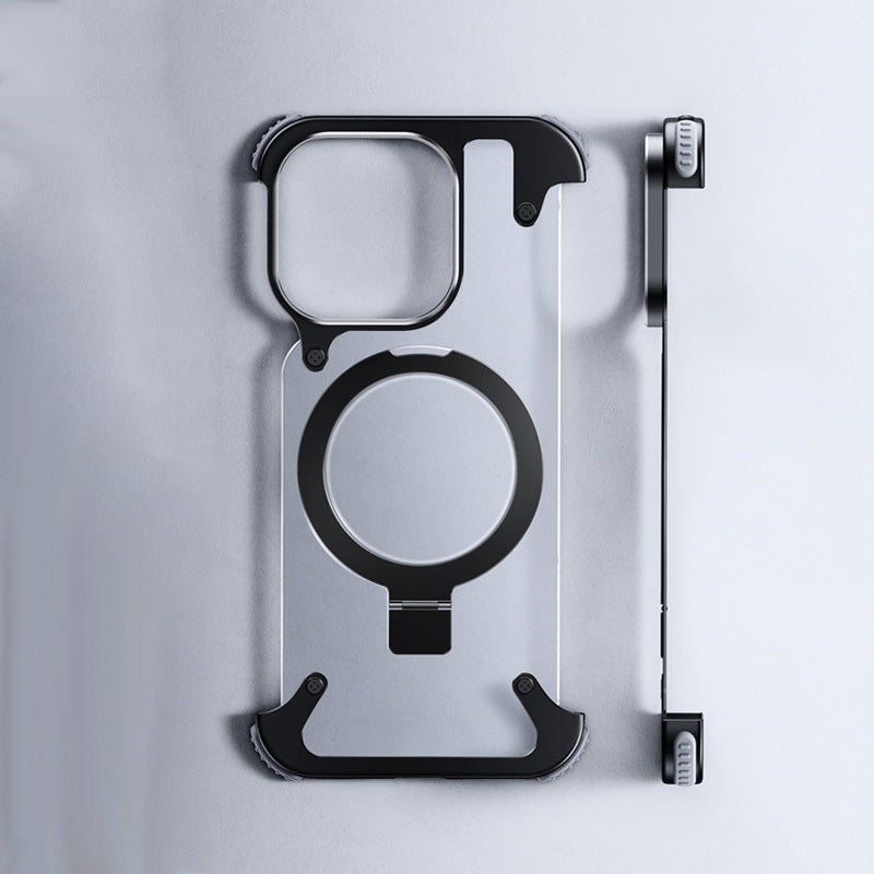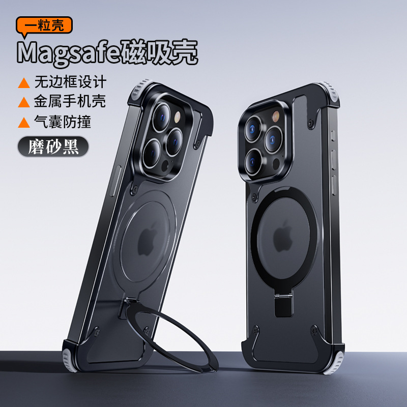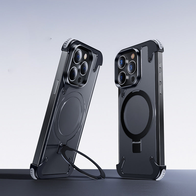 Magnetic Metal Frame Anti Fall Airbag Protective Phone Case foriPhone 15 Pro Max 14 13 Frameless Bracket Phone Cover