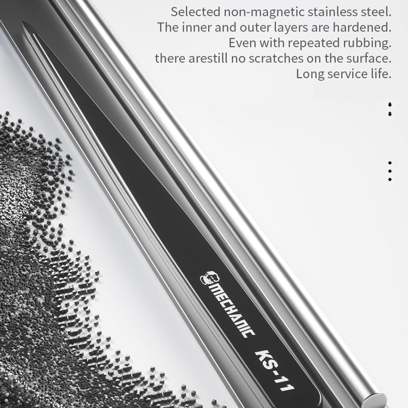 MECHANIC KS-11 Hand Polished Jumper Non-magnetic Tweezers 0.008mm Tip Precision Stainless Steel Mobile Phone Repair Manual Tool