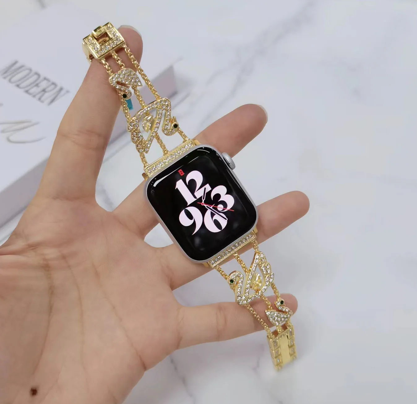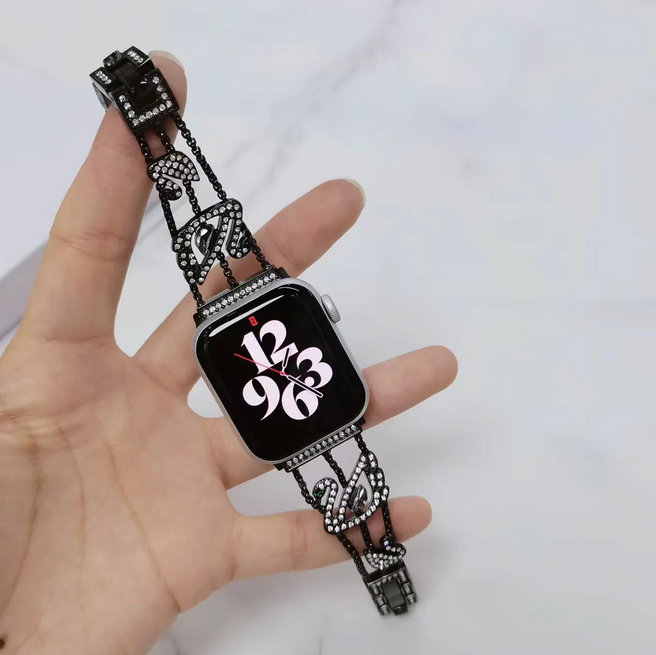 Metal Diamond Strap for Apple Watch 9 8 7 45mm 41mm Women Stainless Steel Swan Style Bracelet IWatch 6 5 4 3 SE 44mm 40mm 42mm