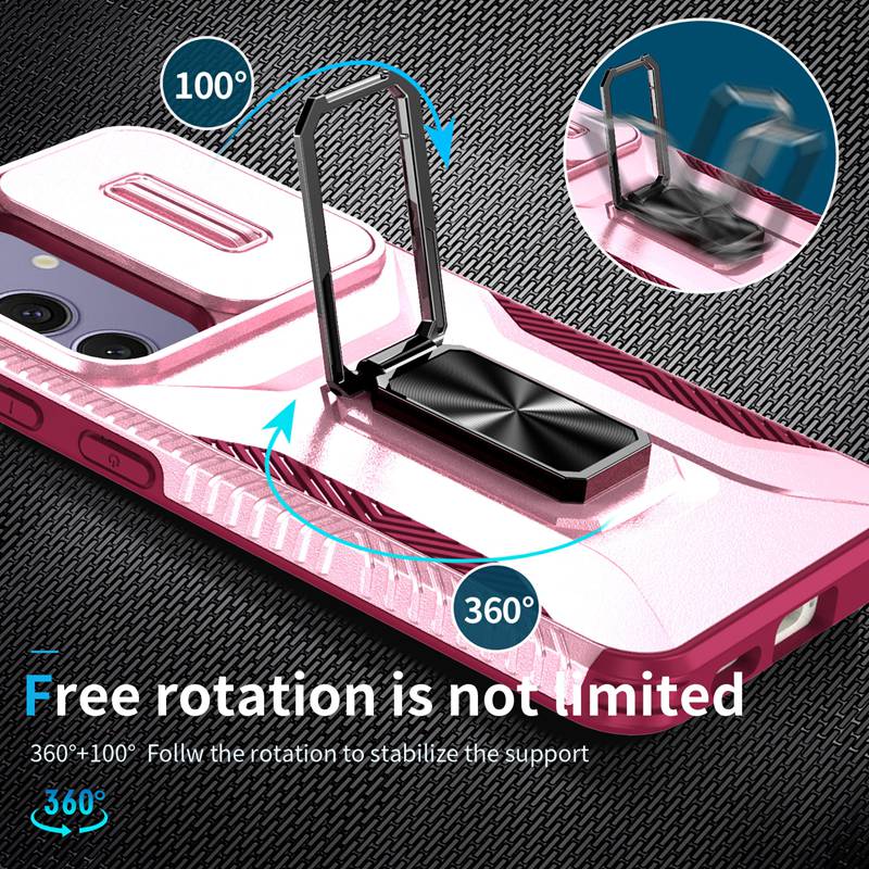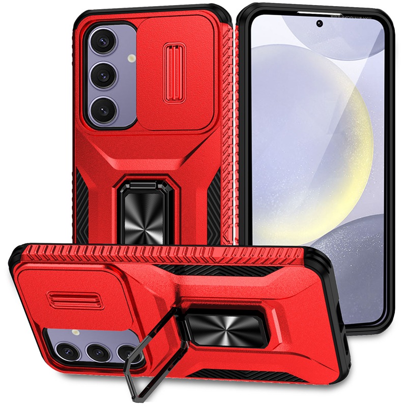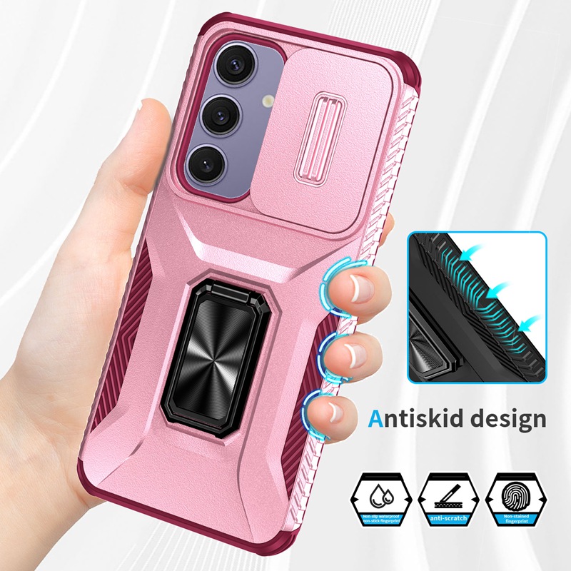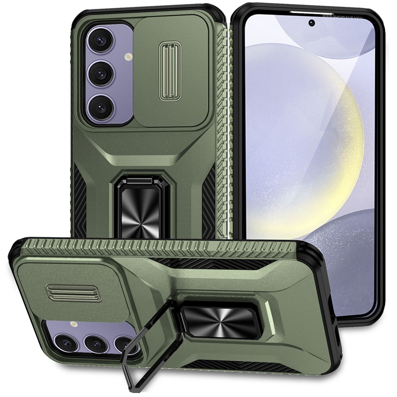 Military Ring Holder Case For Samsung Galaxy S25 S24 S23 S22 S21 FE Plus Ultra A05 A14 A16 A25 A26 A34 A35 A36 A54 A55 5G Camera Lens Slide Cover SamsungS24FE Cases