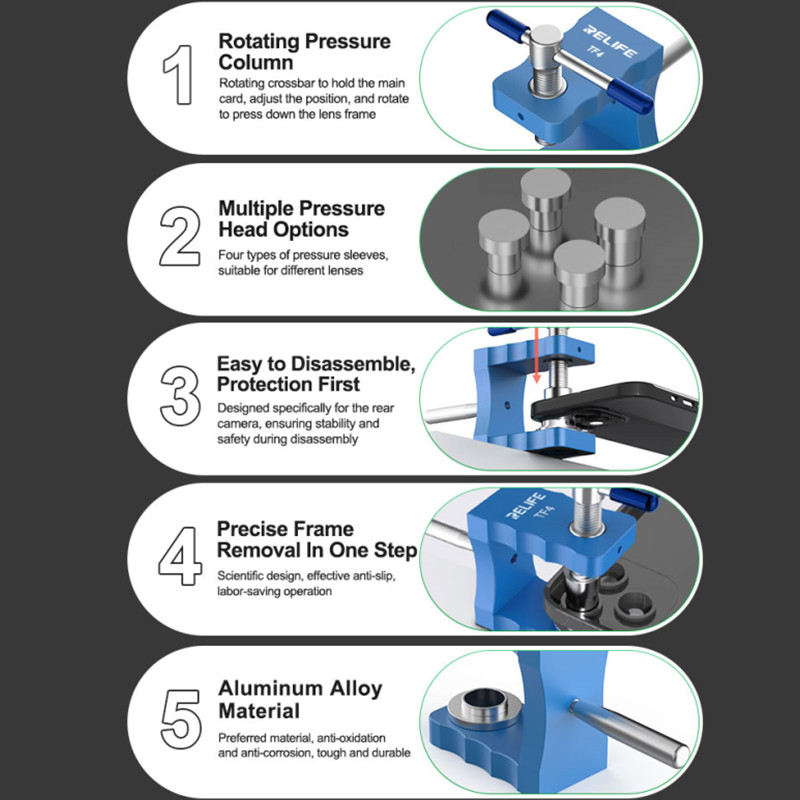 RELIFE TF4 Rear Camera Frame Remover for Mobile Phone Maintenance Aluminum Alloy Precise Frame Rear Cover Glass Removal Fixture