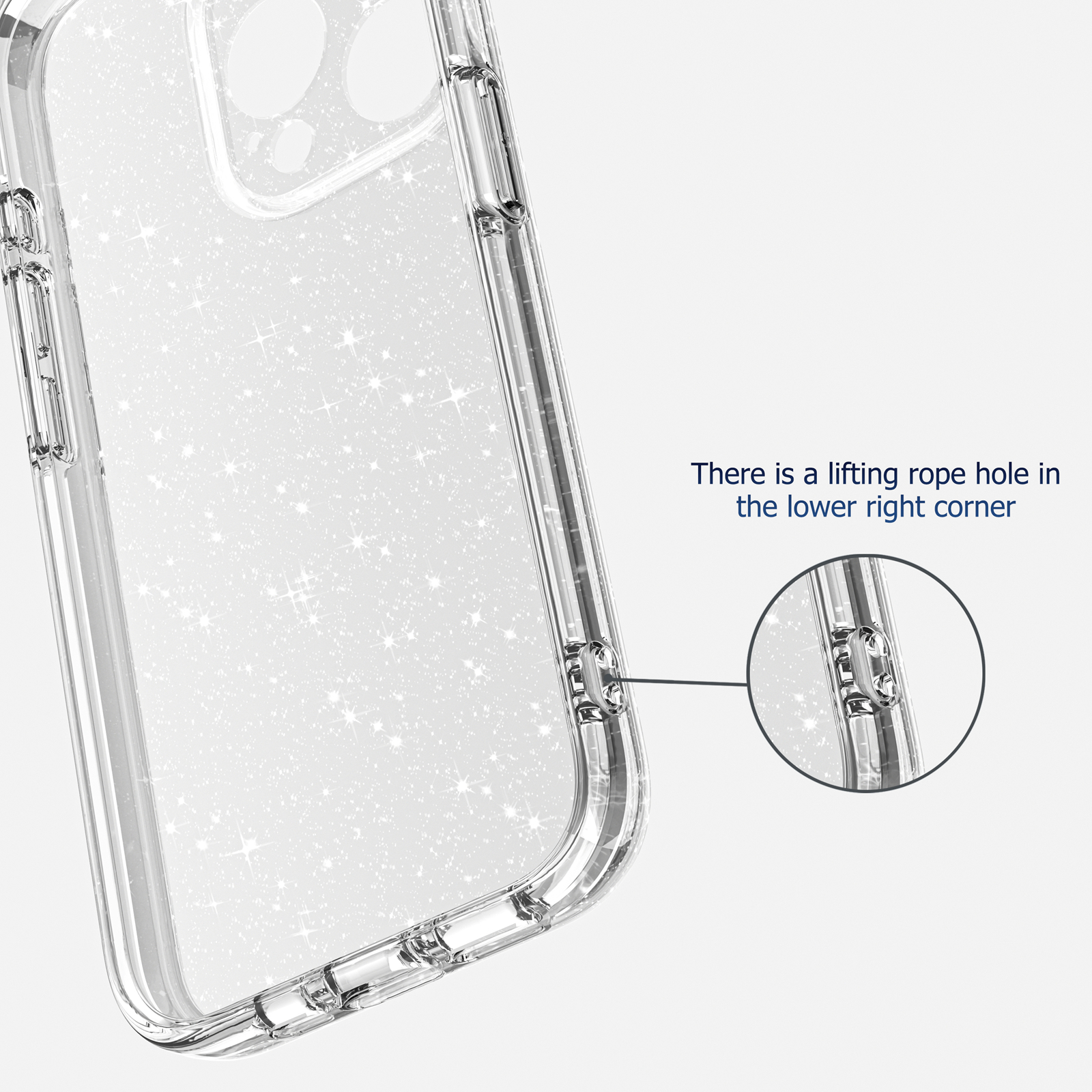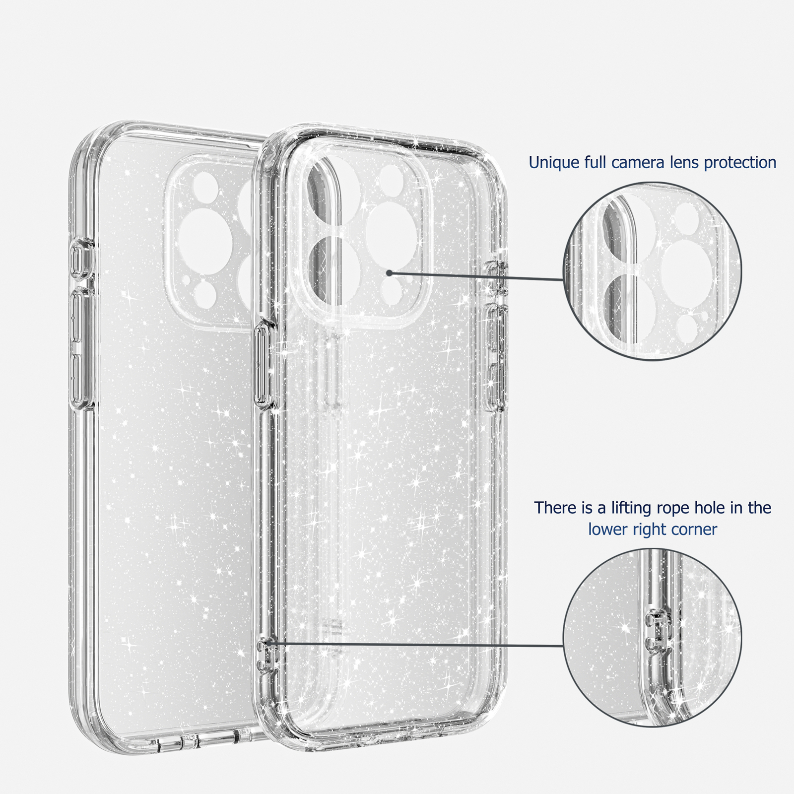 Shock Absorbing Bumper Sturdy Hard Back Heavy Duty Case for iPhone 17 Air 16 12 13 14 15 Pro Max Plus Crystal Clear Bling Glitter Cover