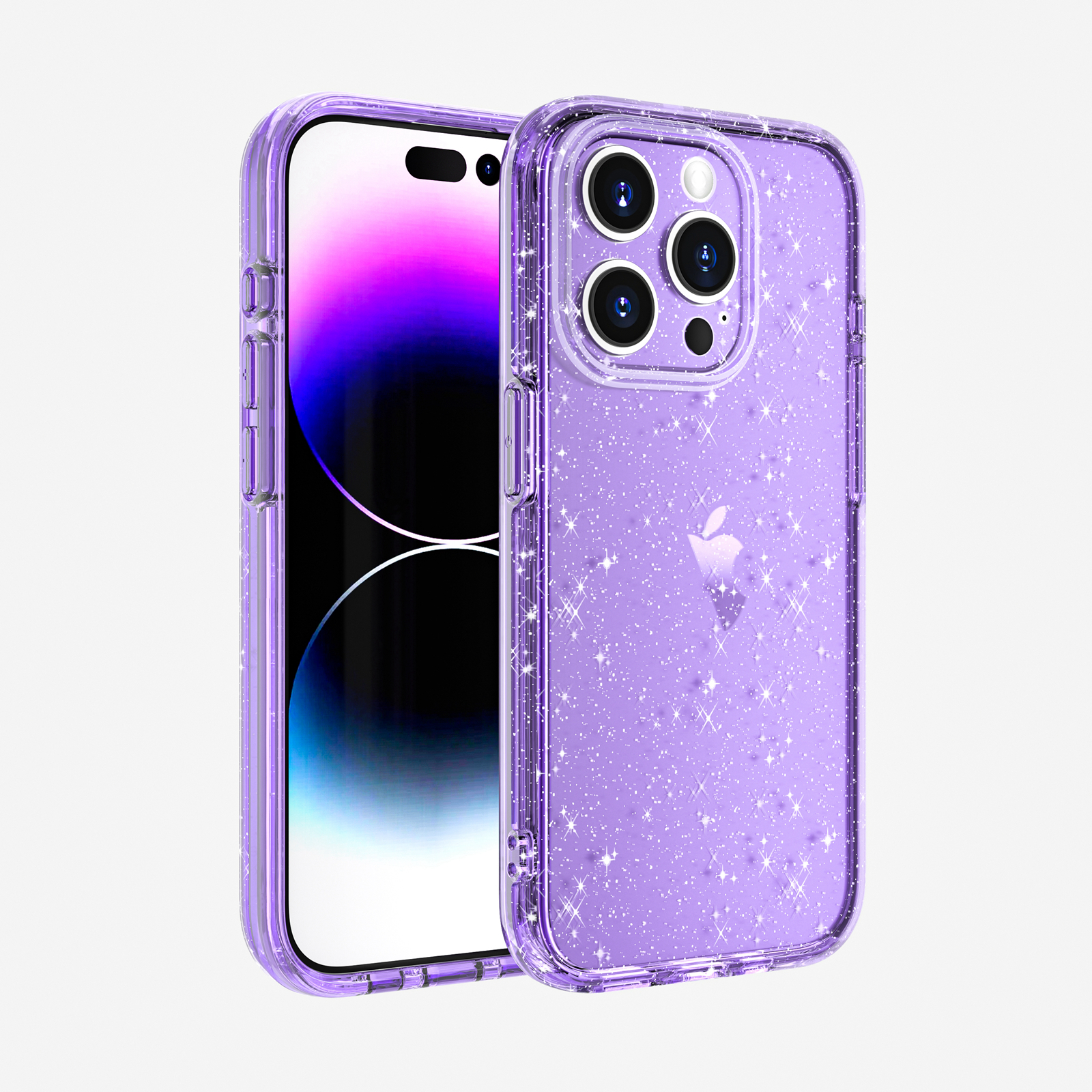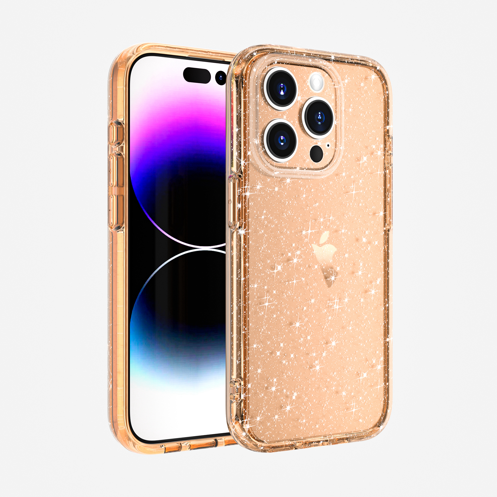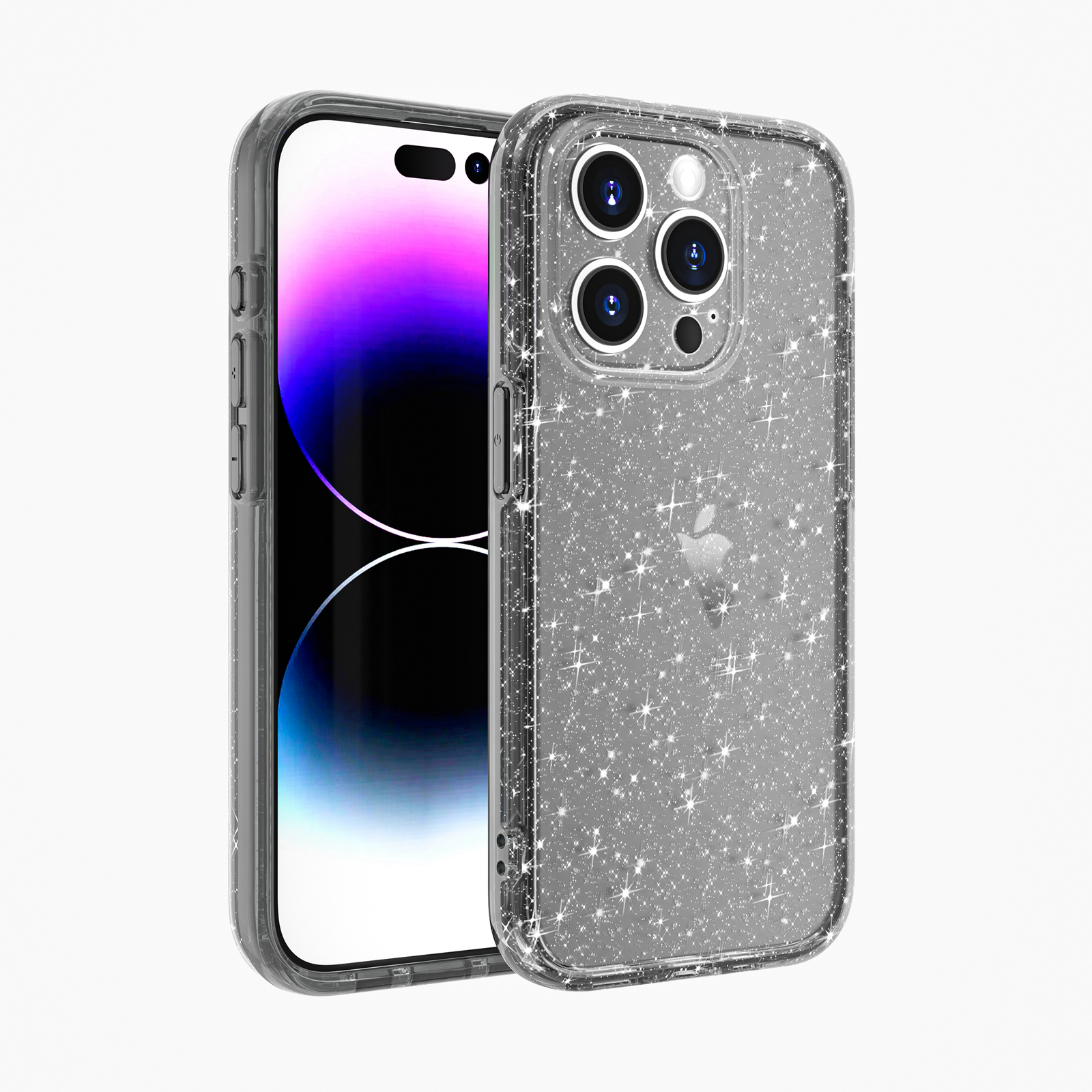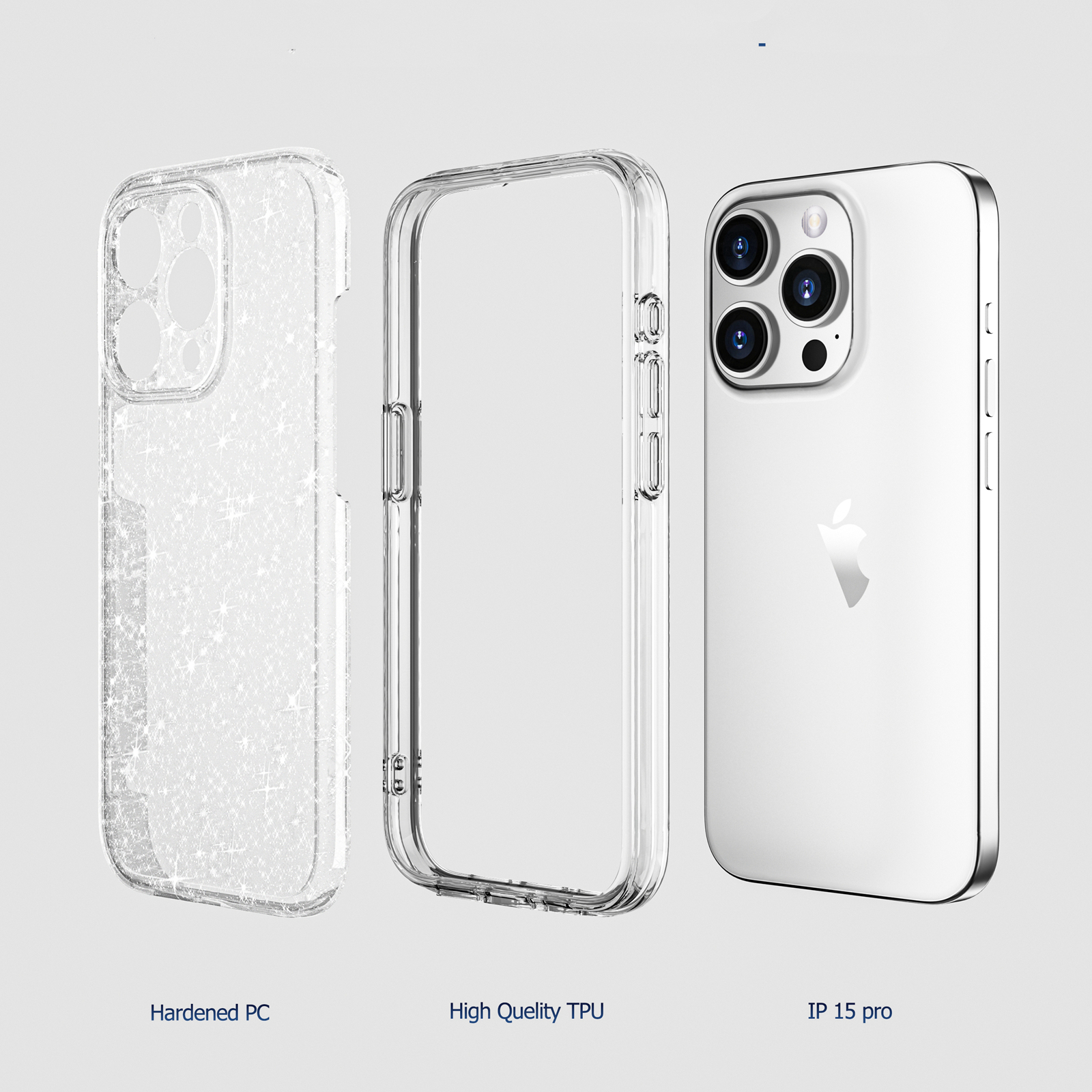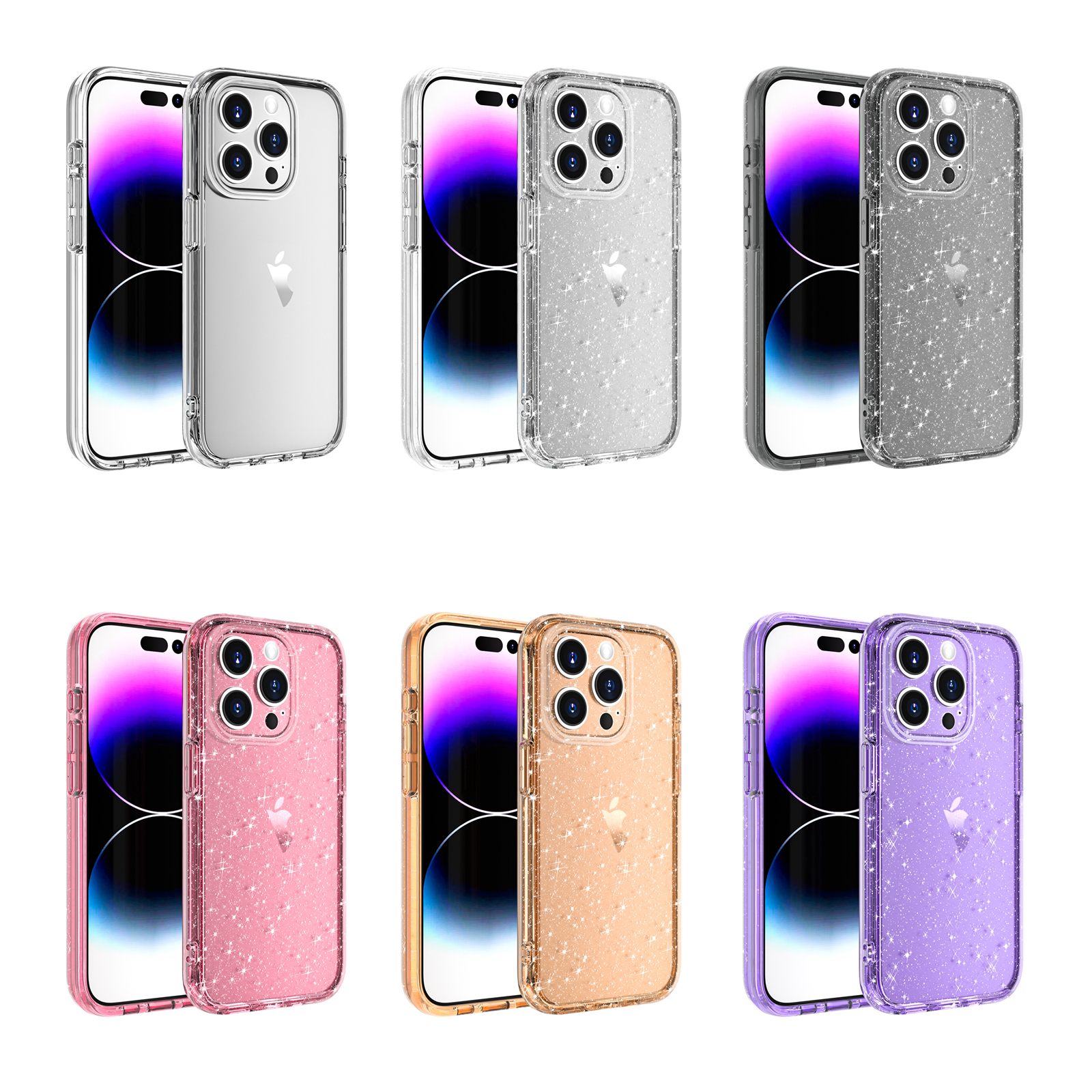 Shock Absorbing Bumper Sturdy Hard Back Heavy Duty Case for iPhone 12 13 14 15 Pro Max Plus Crystal Clear Bling Glitter Cover