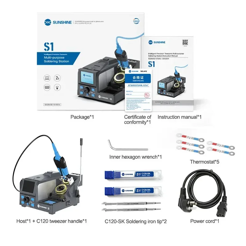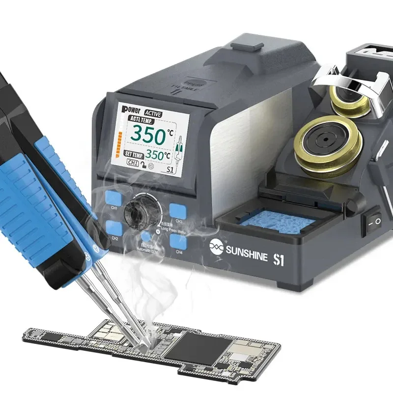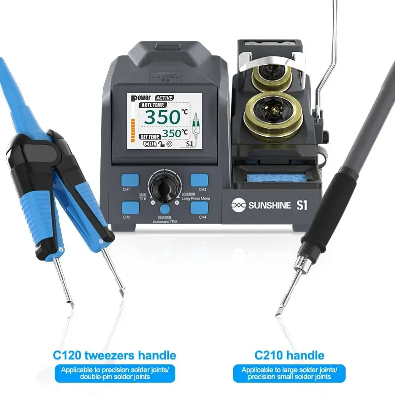 Sunshine S1 Precision Soldering Station Tweezers Rework Station For Micro Component, 4 Preset Channel, 2Pcs C210-SK Cartridge