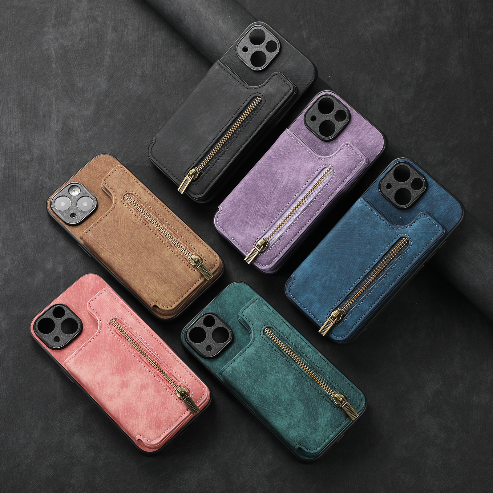 Zipper Cards Solt Wallet Leather Case For iPhone 15 Pro Max 14 Plus 13 12 11 XS XR Se 2022 Pocket Magnetic Double Buckle Cover
