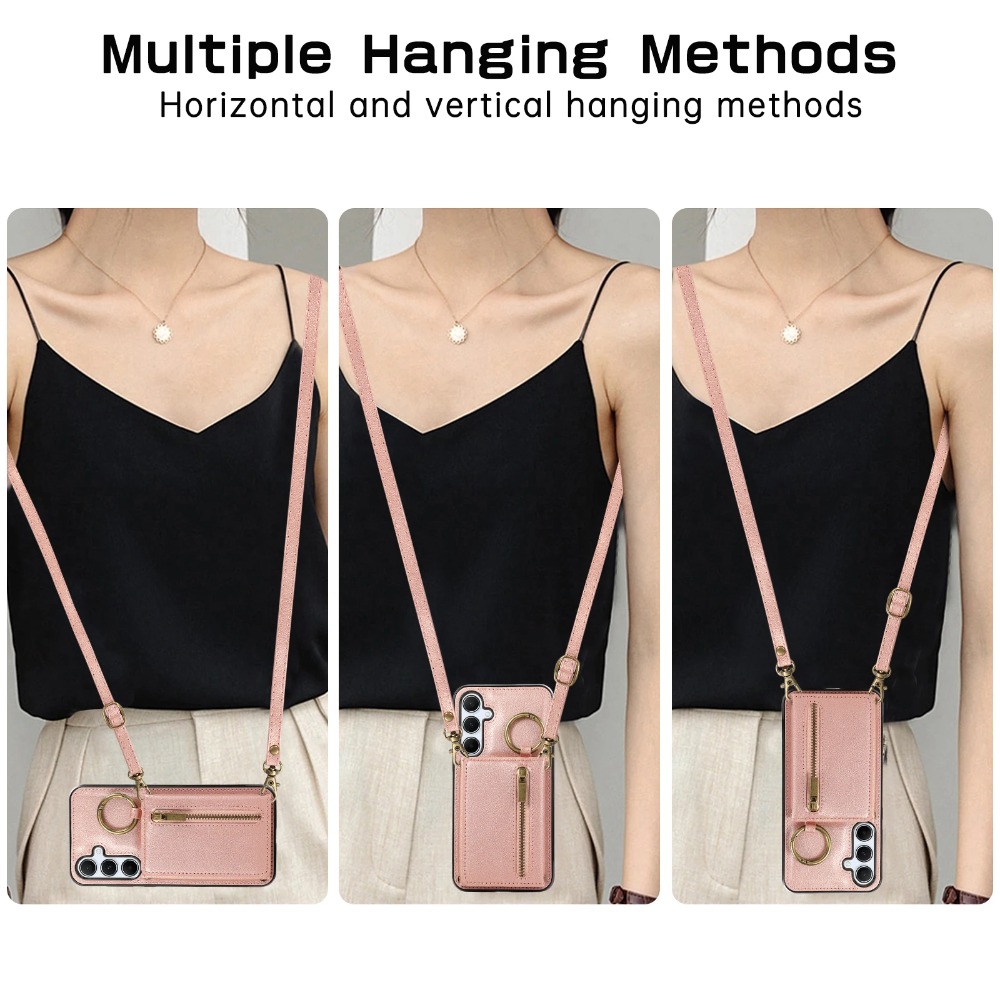 Zipper Wallet Card Holder Leather Crossbody Women Girls Case For Samsung Galaxy A06 A12 A13 A14 A15 A16 A21 A22 A24 A25 A26 A32 A33 A34 A35 A36 A51 A52 A53 A54 A55 A56 A71 A72 4G 5G Cover